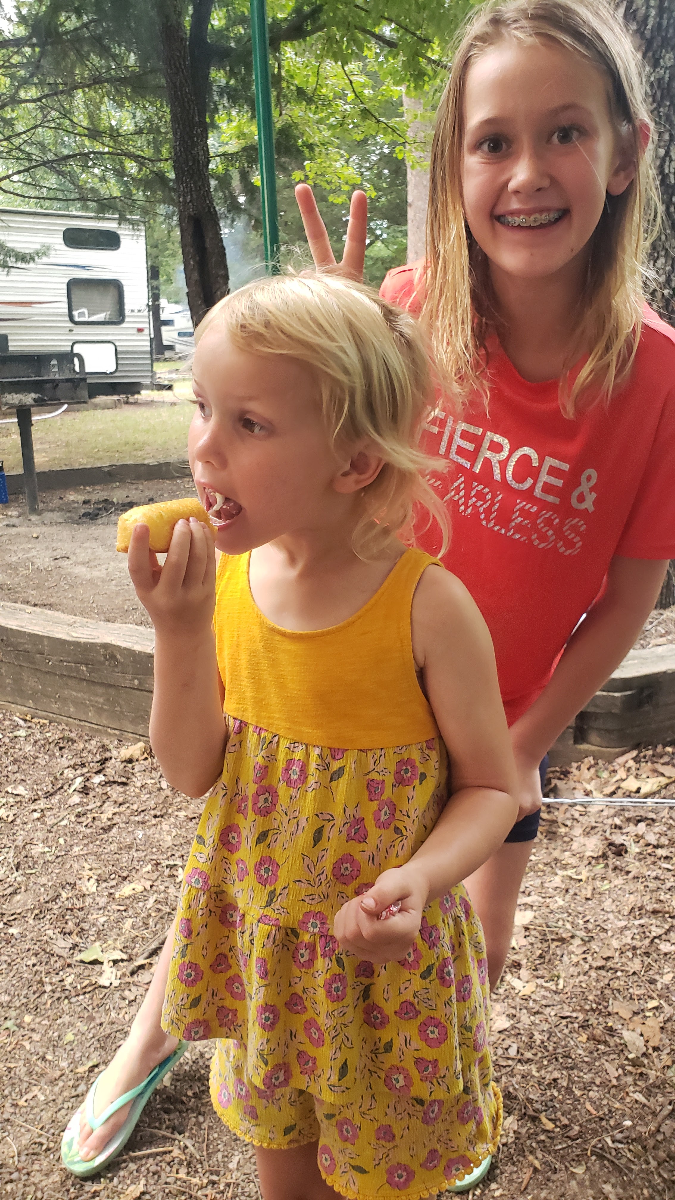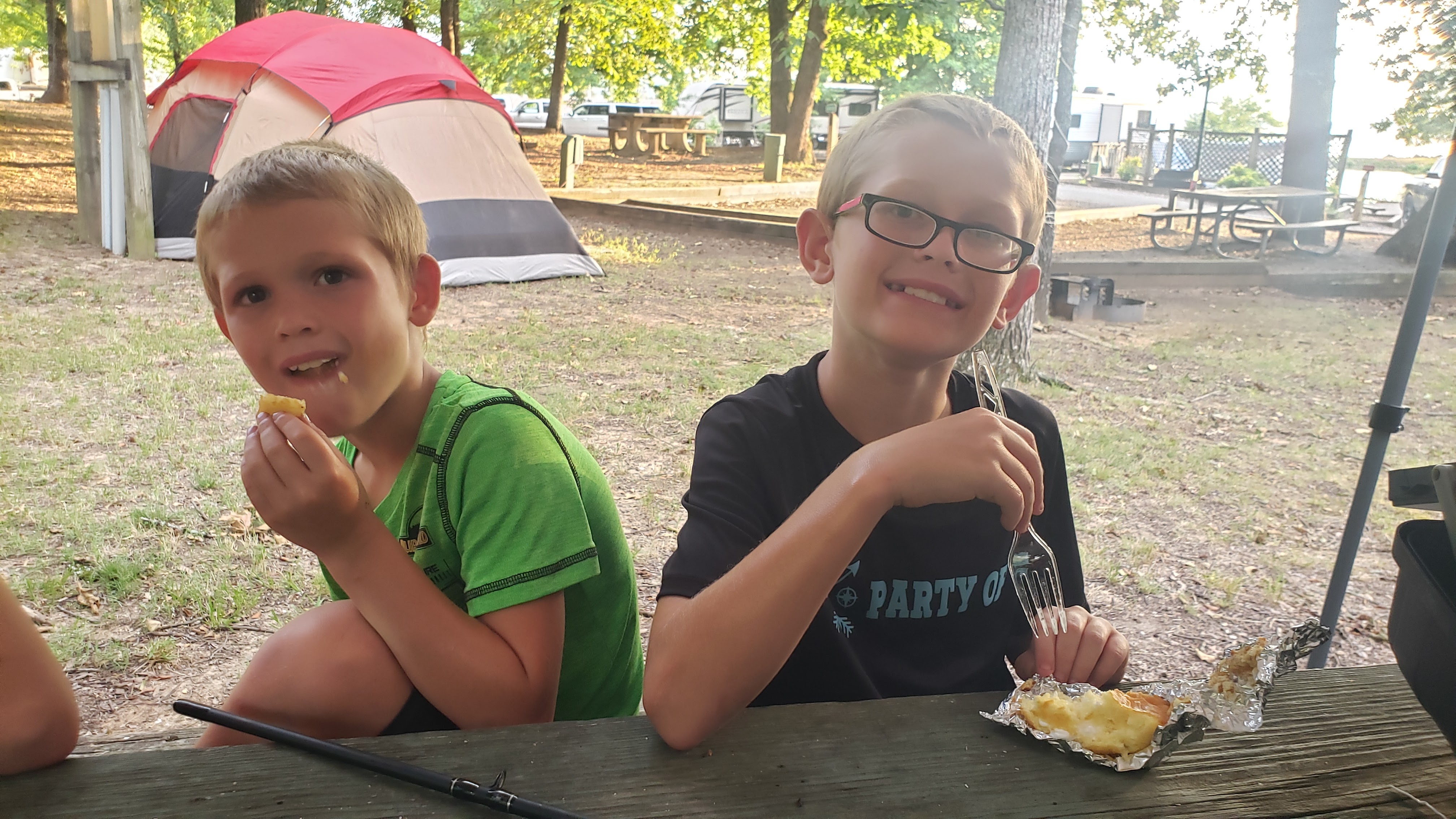 Twinkies for dessert. We put a campfire twist on them though. Some were cooked on the fire wrapped in foil, some were cooked over the fire with a skewer, and if your Jovie you just ate it without warming it up. Highly recommend campfire Twinkies.