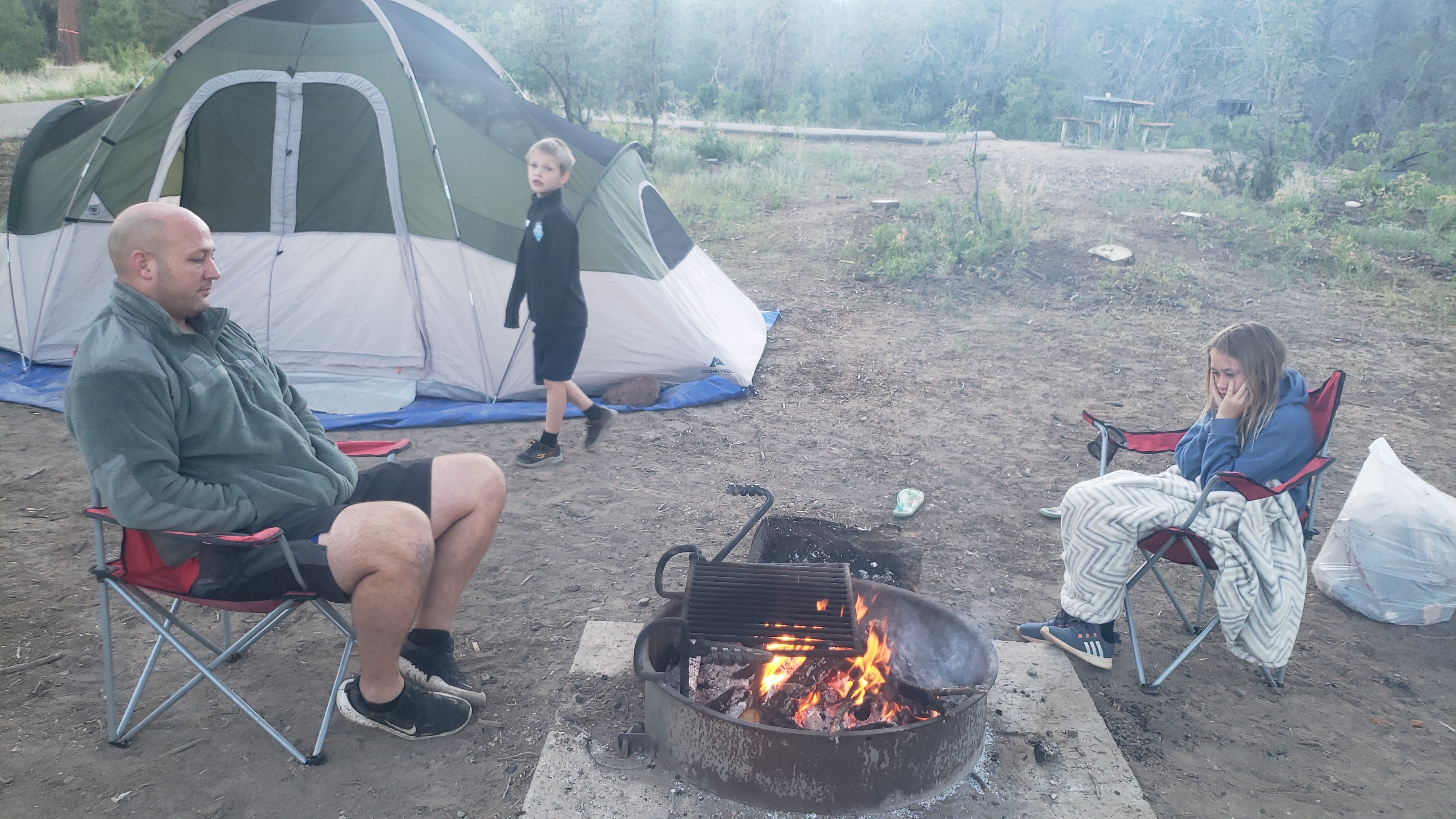 The campsite for the night. This was the first time this trip we have primitive camped. No on site water or electric. There was also no restroom or bathhouse. We all survived.