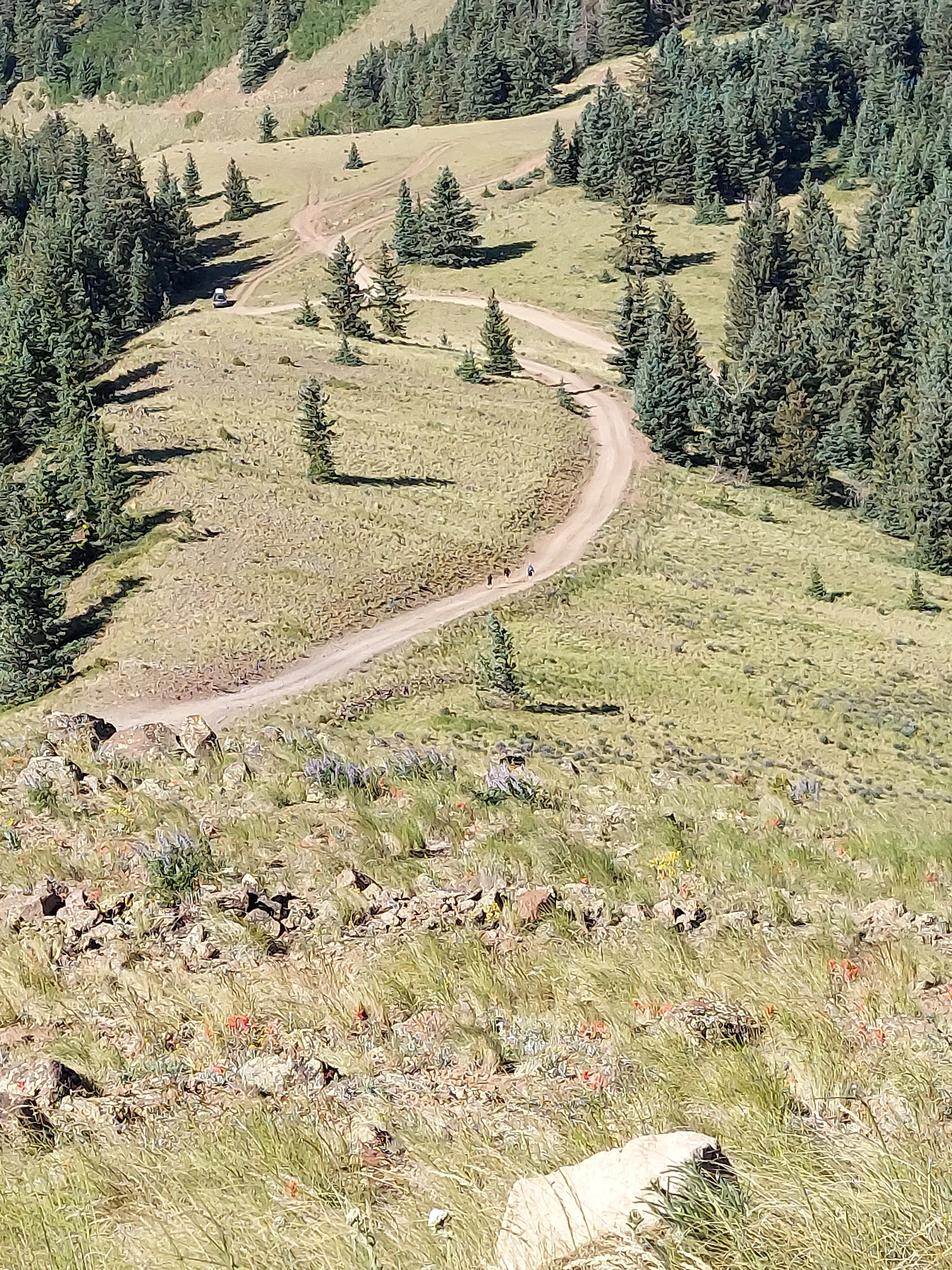 Then we went for a morning hike that turned into quite the adventure. Our goal was to climb to the top of Mt. Taylor. We were told that you could drive up almost to the top. This is absolutely true if you are on a 4-wheeler or maybe a Jeep, but not a Highlander with a trailer. We decided to drop the trailer at one point that actually had a cut out. (The road was mostly one lane up the side of a mountain.) Our car did amazing and we made it pretty far, but the rest we did on our feet.