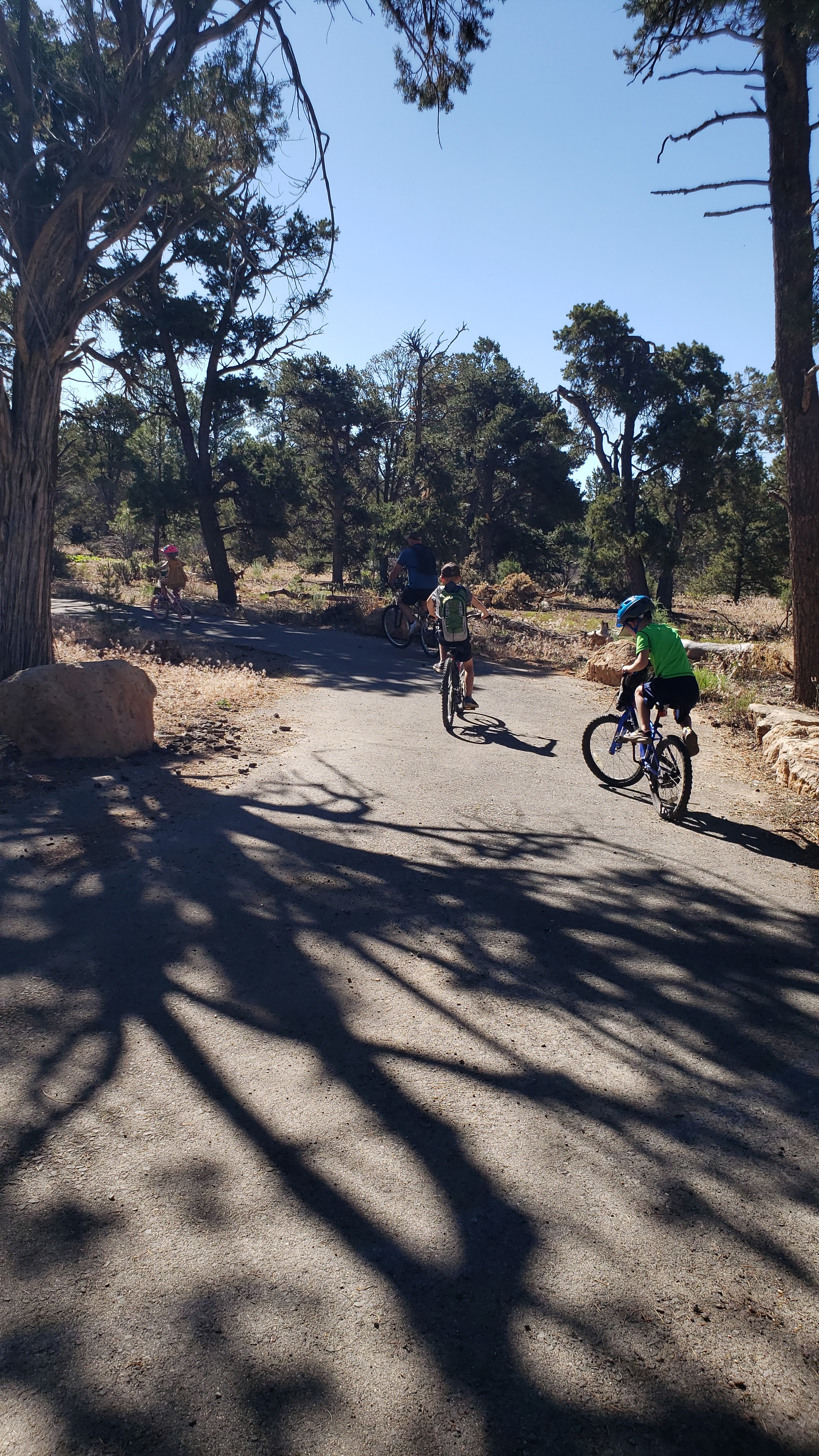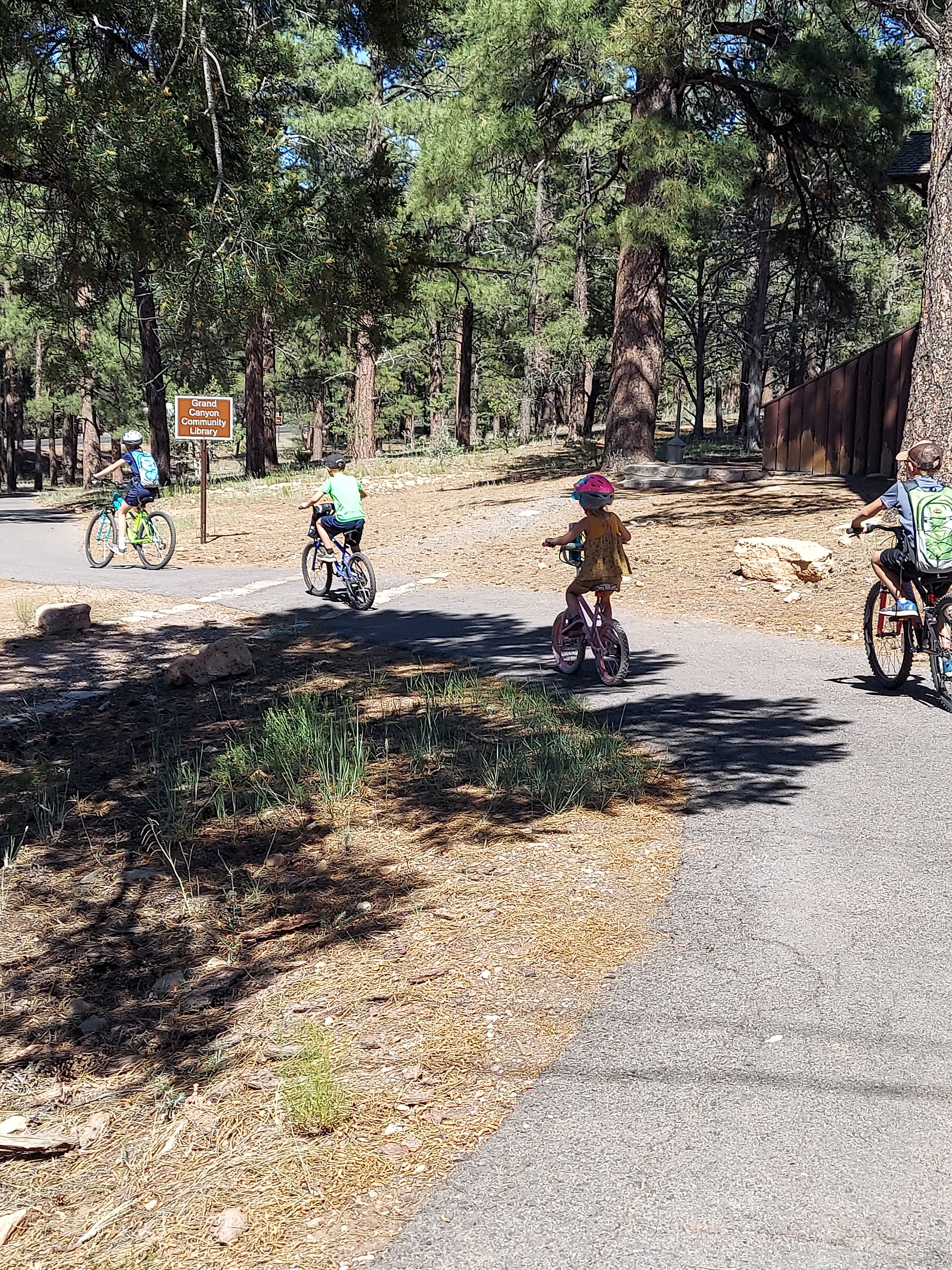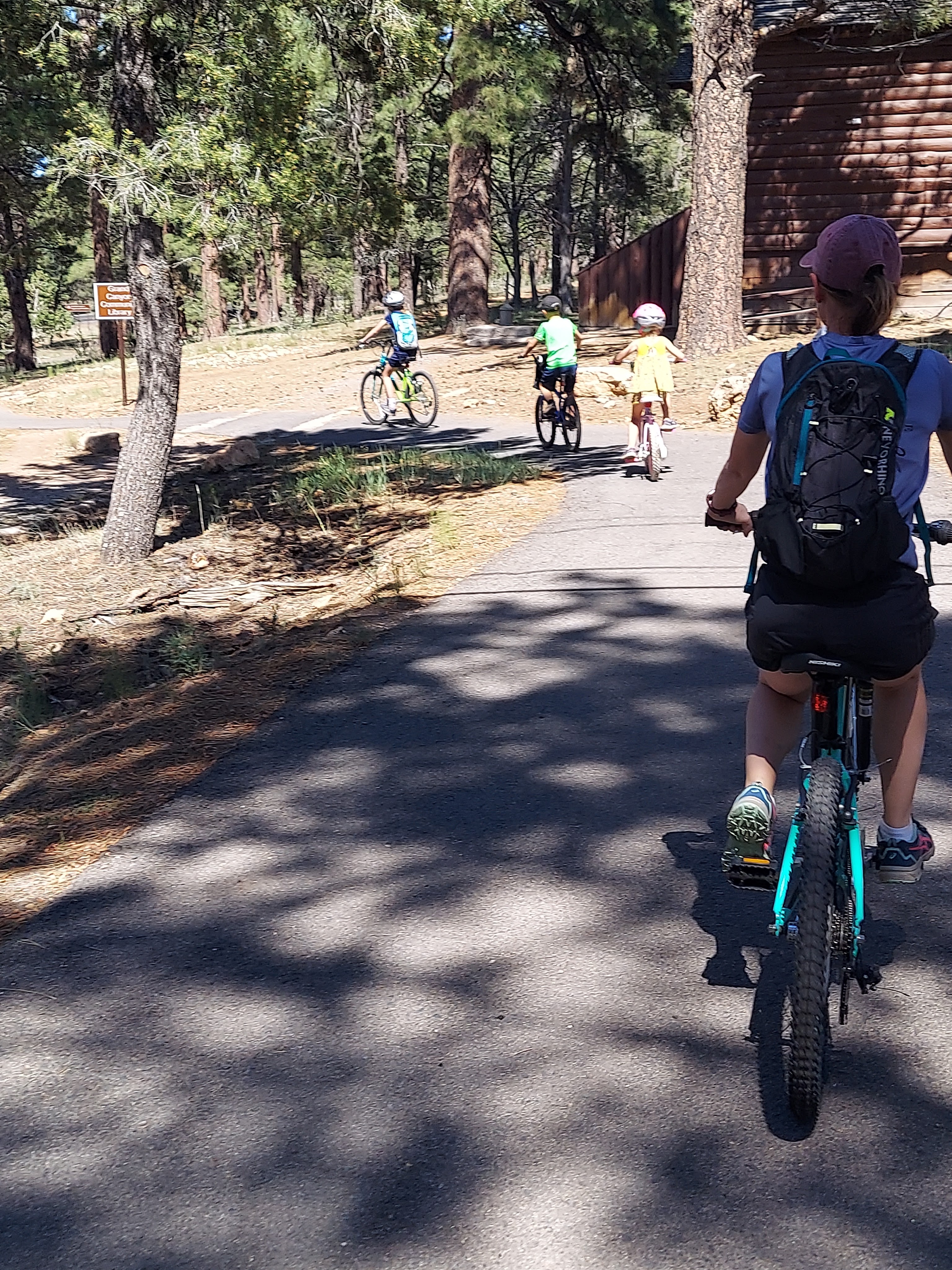 We got our bikes off the trailer for the first time this trip. The kids were pumped to ride their bikes around the campground. The first night we rode our bikes to the Grand Canyon Visitor Center to view the South Rim of the Canyon.
