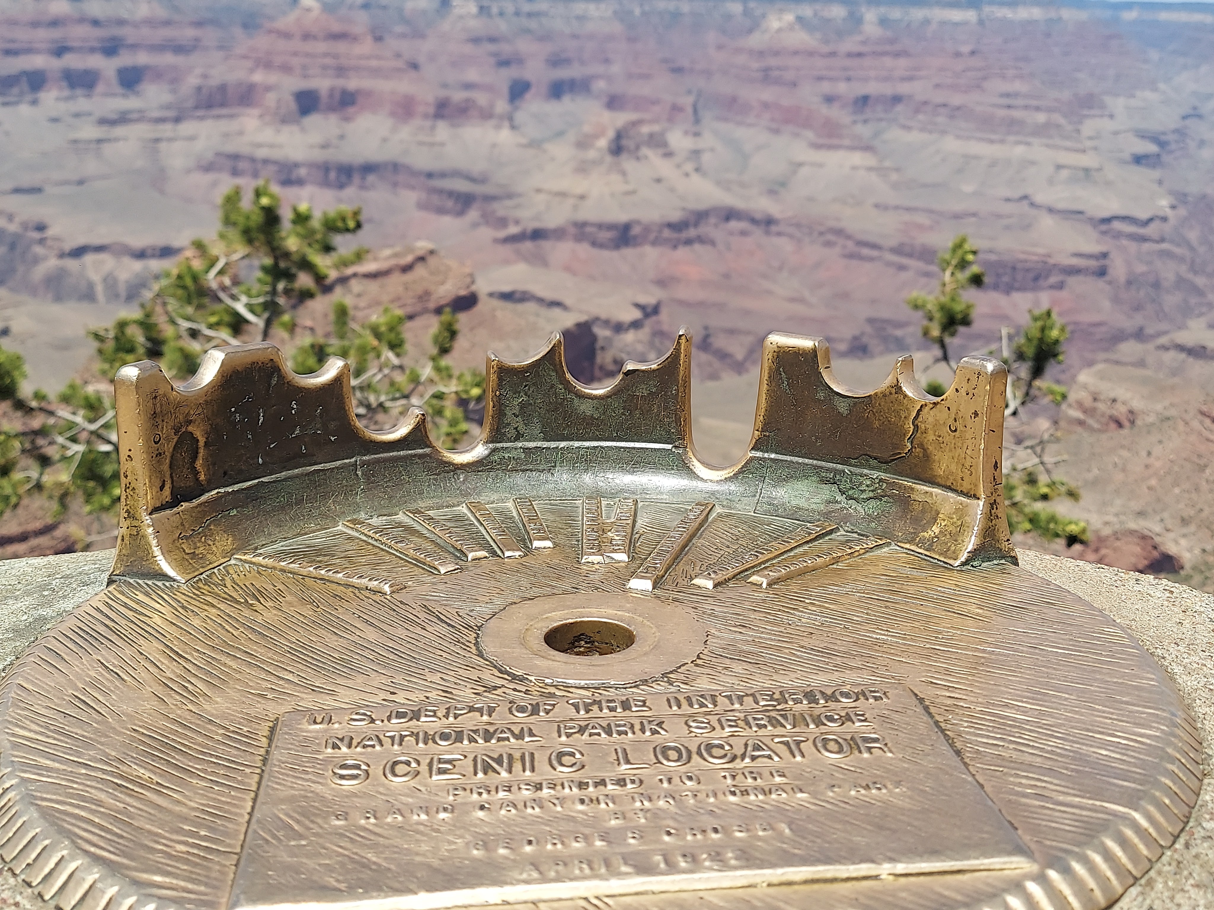 Reference marker that shows different landmarks in the Grand Canyon South Rim.