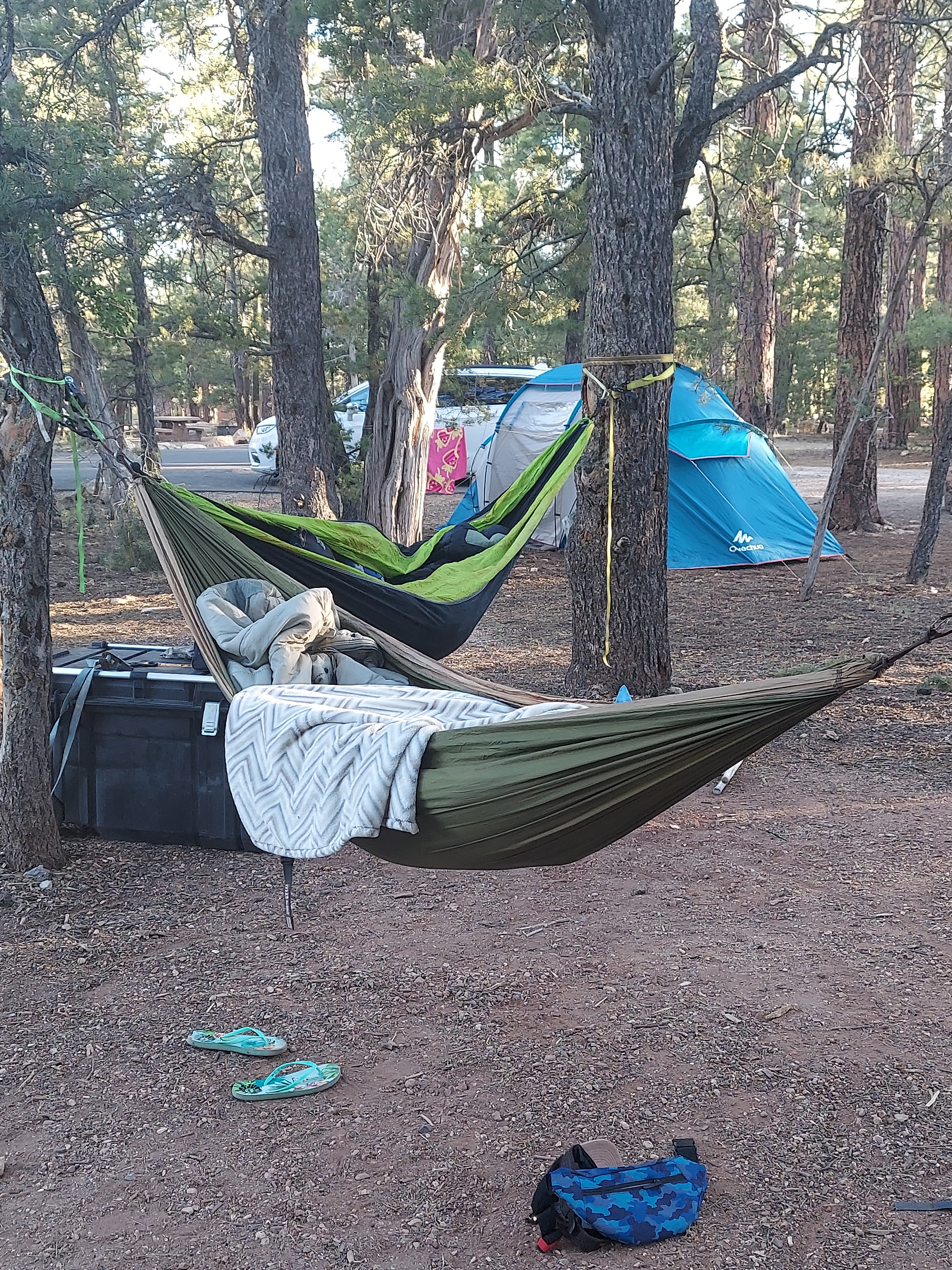 The boys slept in hammocks. Good morning!