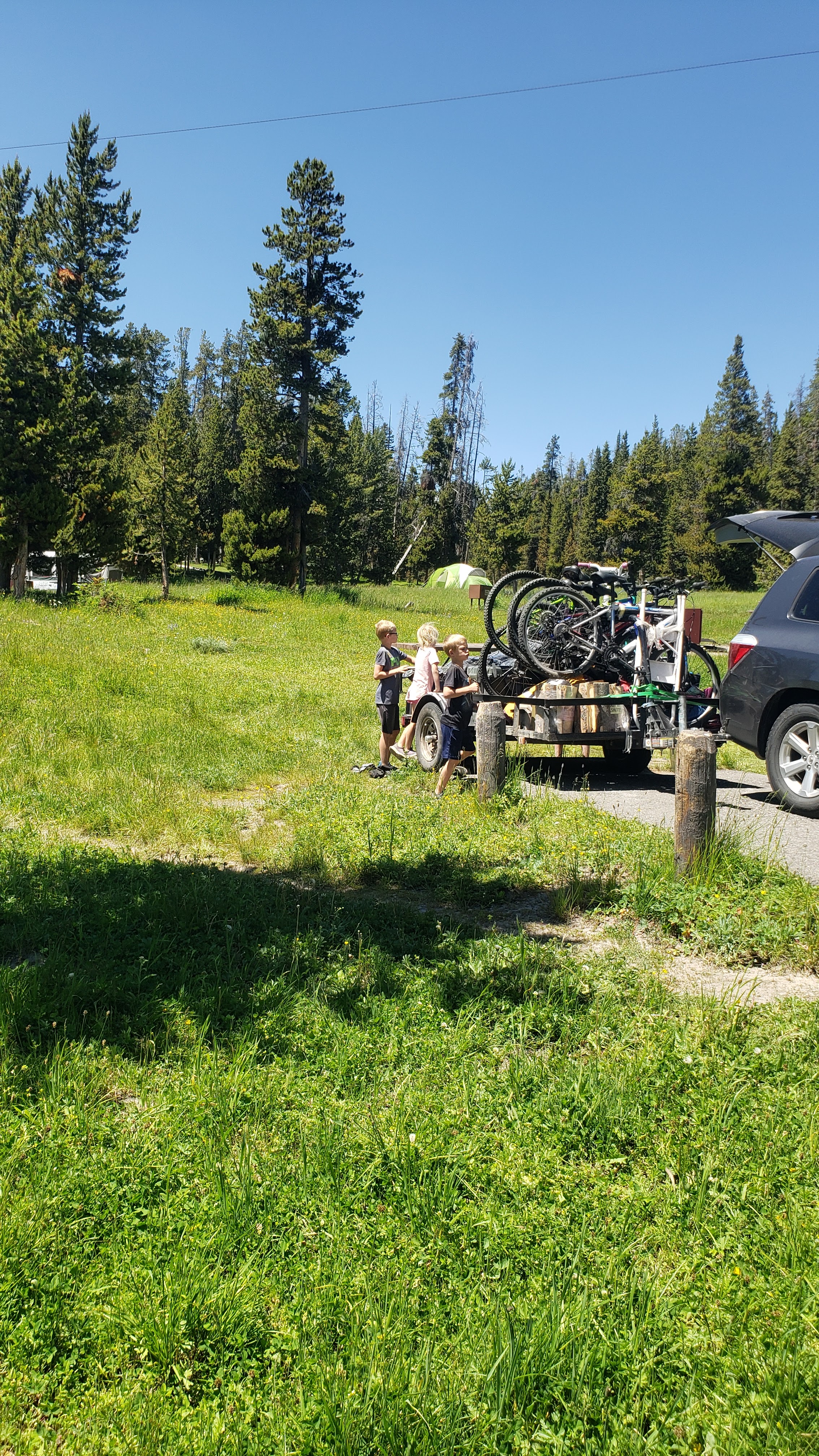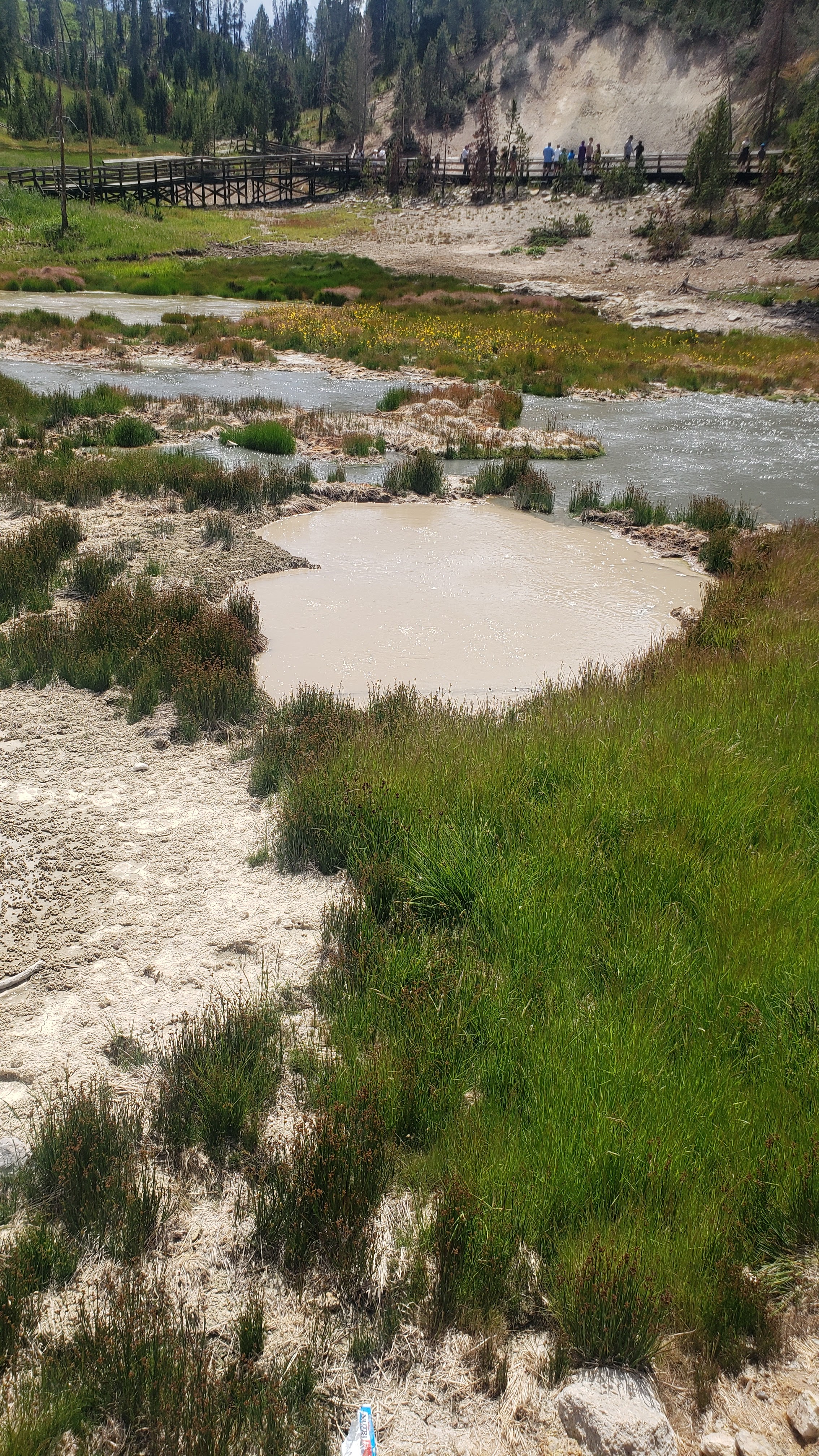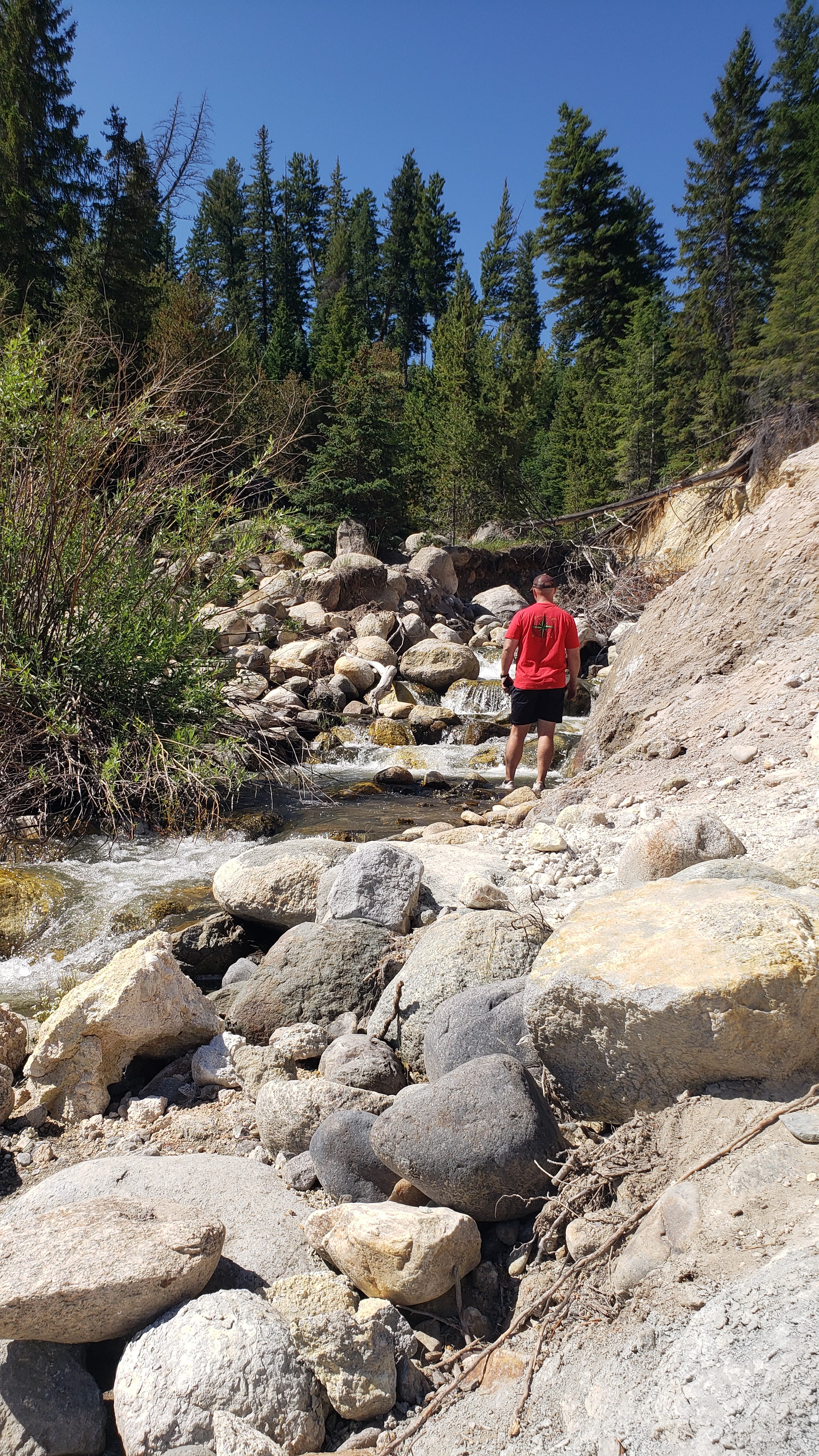 Came back to this area on the river that was coming from a small waterfall. The kids were playing in the river moving logs and rocks. Ry asked Steven to help him move a log, which Steve happily went to do with his phone in his hand. You can imagine what happens next. Somewhere in the Yellowstone River is Steven’s phone.