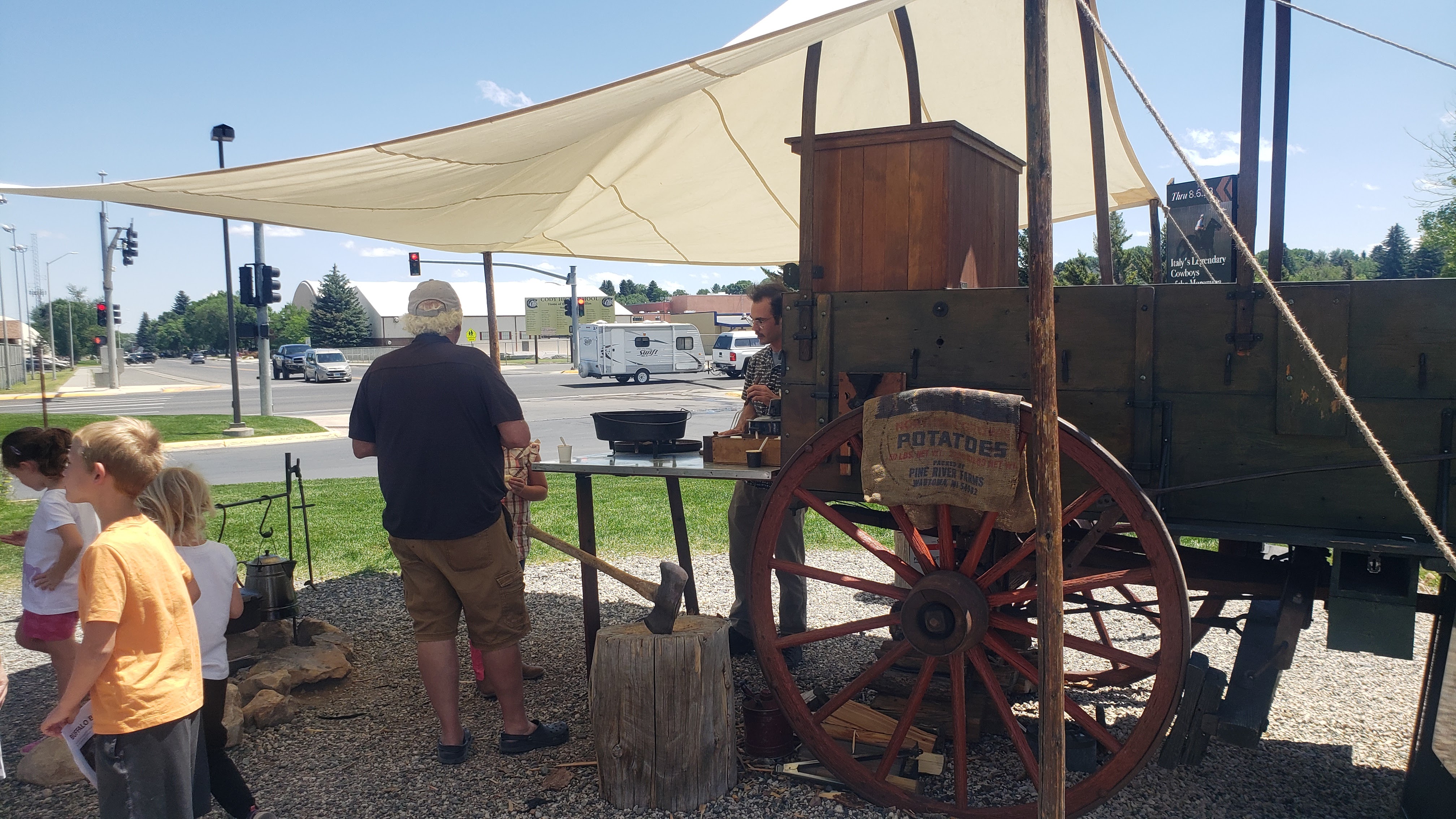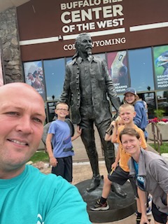 After the boys got their haircuts and the girls did a little grocery shopping to reset for the next few days we went back to the museum and visited the wagon where he was making beans, biscuits, and coffee. We then visited the Buffalo Bill museum and the Plains Indians museum.