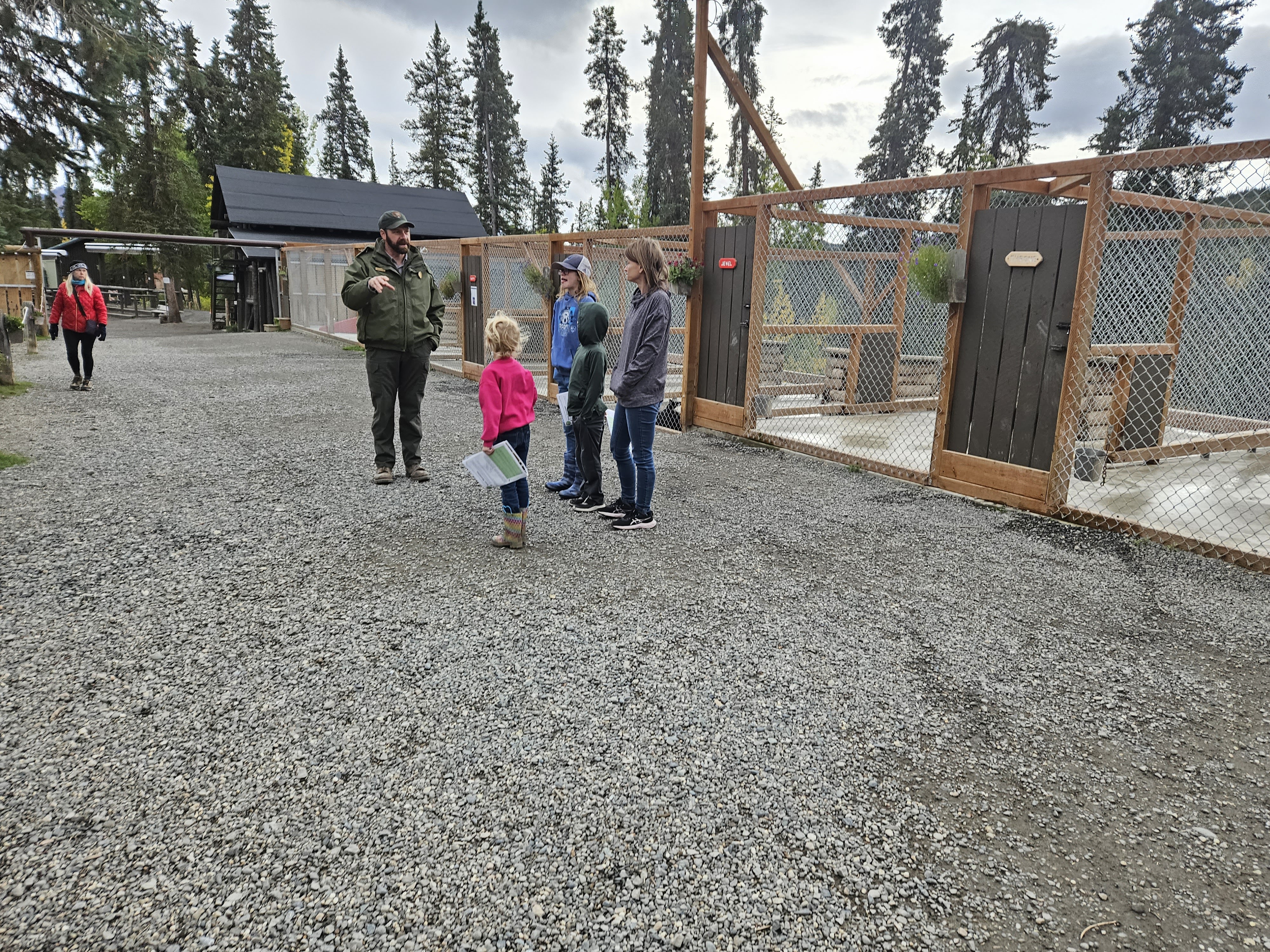The next morning we began our adventure at Denali National Park. We started with the sled dog team. The sled dogs have been used at the National Park since it became a park. This team prepares trails in the winter and takes supplies to checkpoints, where park rangers are staying, throughout the park. These dogs are built to pull and not necessarily for speed like the Iditarod racing dogs. They were super sweet and the kids loved giving them lots of attention.