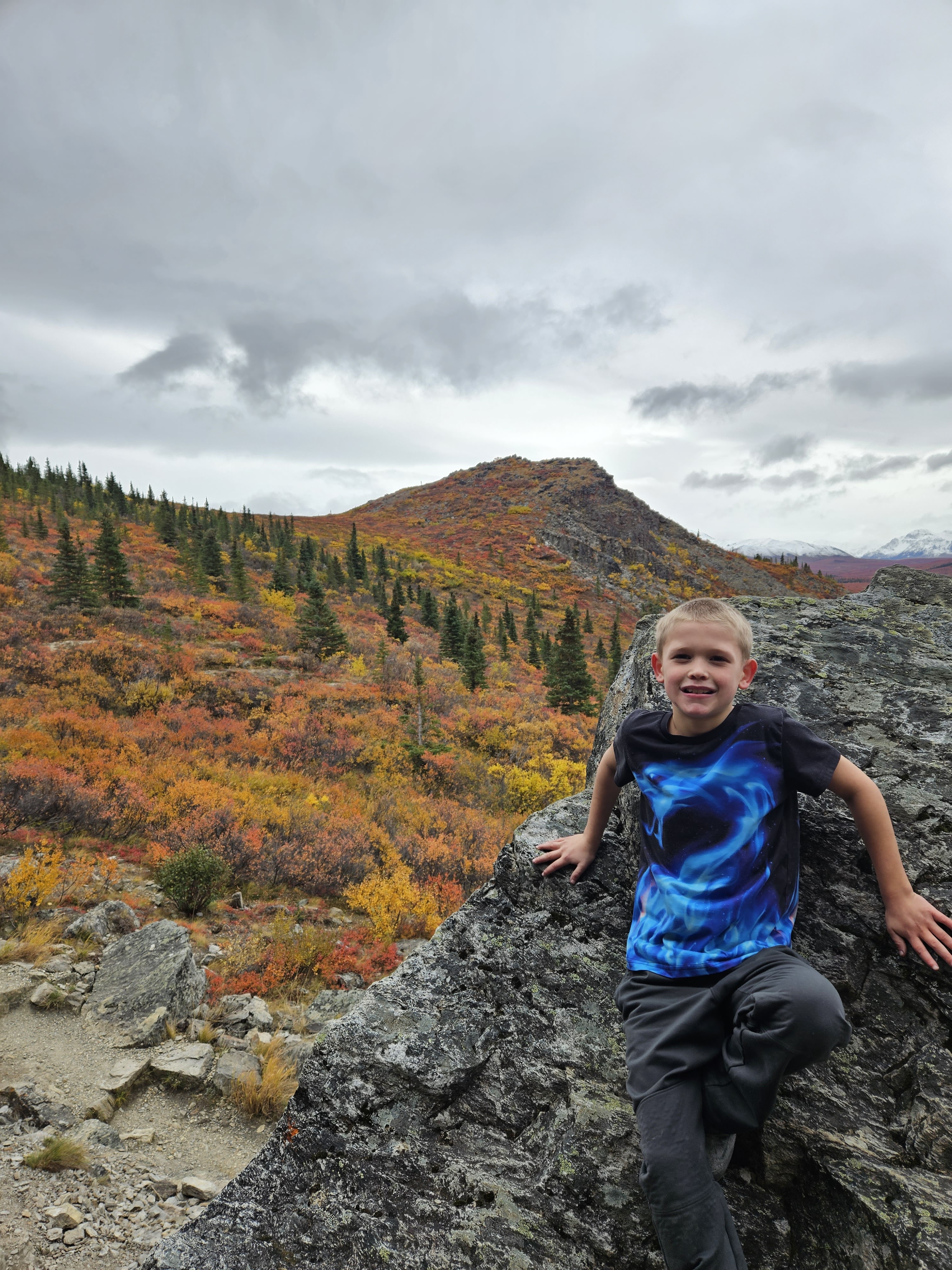 We took Savage trail, where there is a really good view of Denali. Halfway up, there was a super neat rock formation that the kids had a ton of fun exploring.
