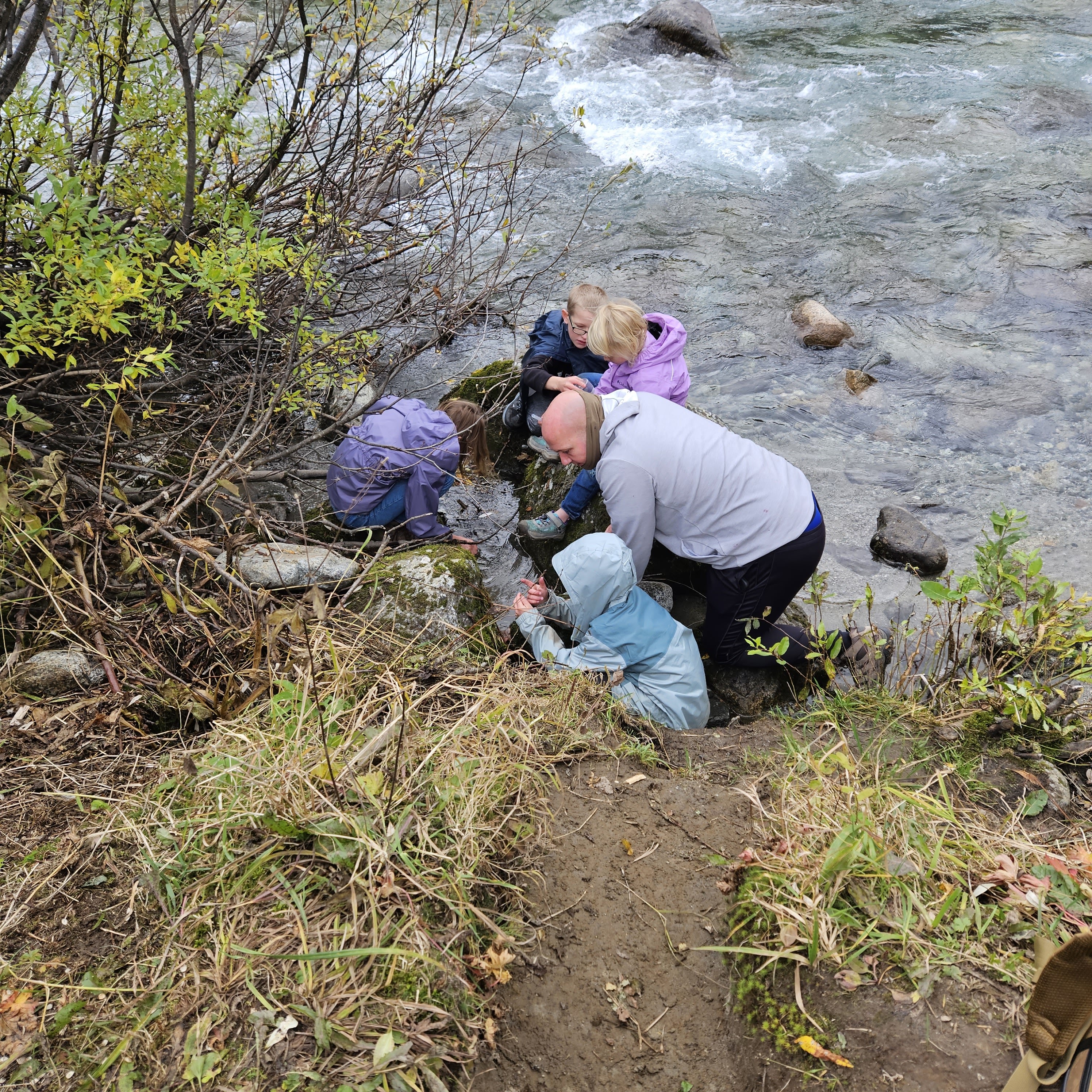 We struck gold (flakes). Along the river Bo spotted a gold flake so we scooped some of the dirt out of the river. Izzy sifted through it when we got home. This is what they found.