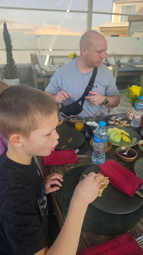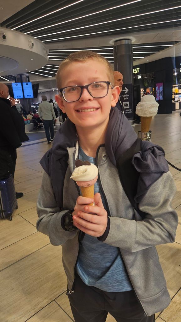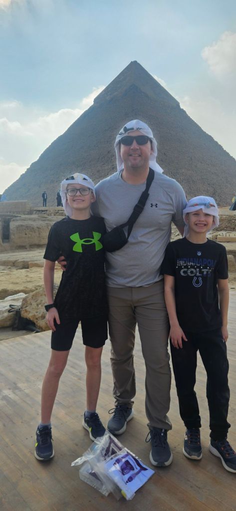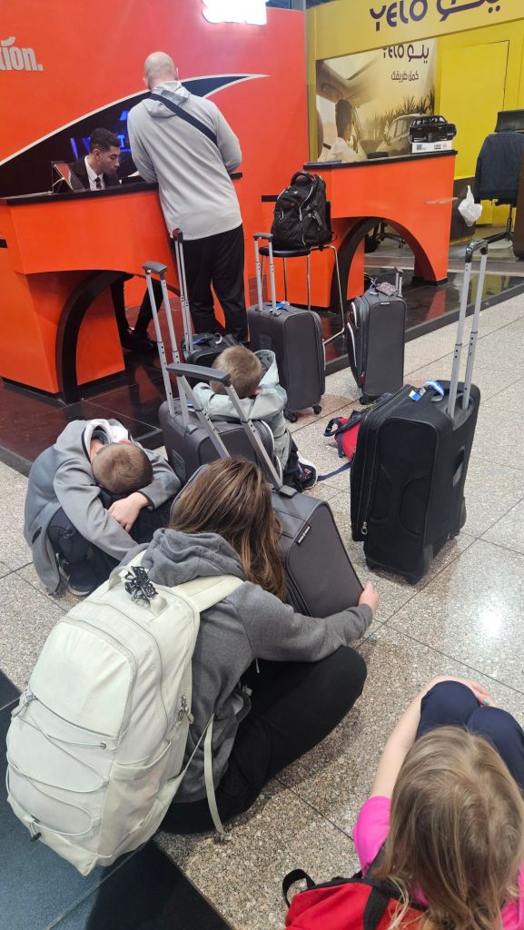 Our layover was in Rome, so we enjoyed some Gelato between flights. We were able to stretch out a bit on the flight from Rome to Cairo Airport to get some sleep. It was quite the process through passport checks and renting the car, as well as being 3am, but the kids were hanging in there.