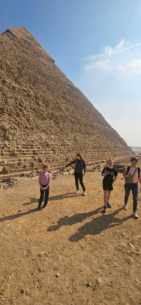 We started at none other than the Pyramids of Giza. The pyramids are truly amazing and hard to translate into pictures. The Egyptian hussel is real and we learned the words “la shukran” or no thank you real quick. We took a lot of pictures with the pyramids.