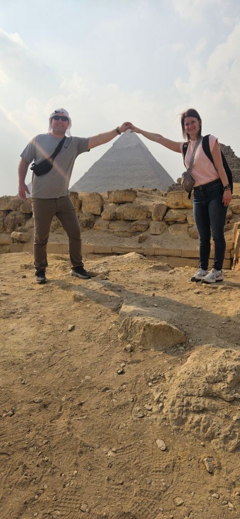 This is what a 4 am arrival into Cairo, a wakeup of 9am to visit Giza shoved in the back of an Egyptian “taxi” looks like at the end of the day.