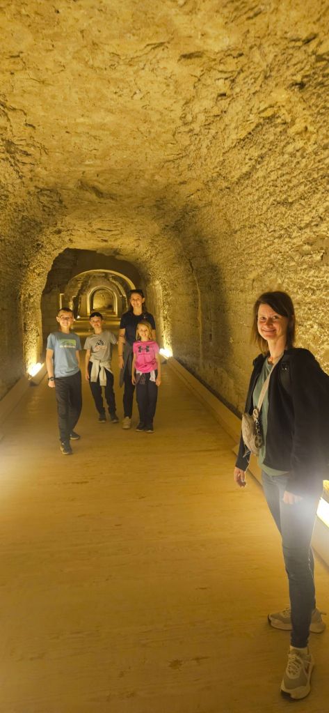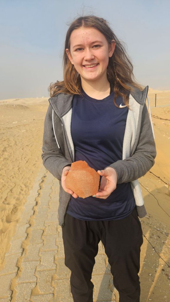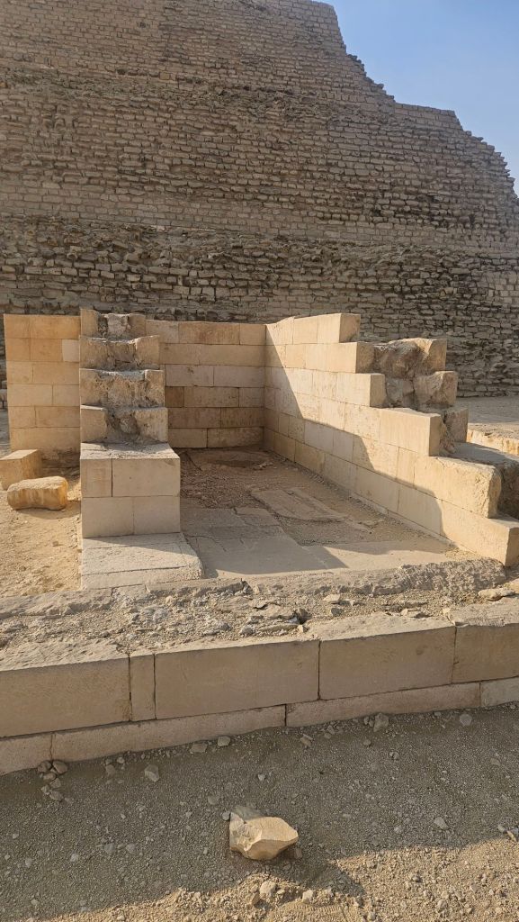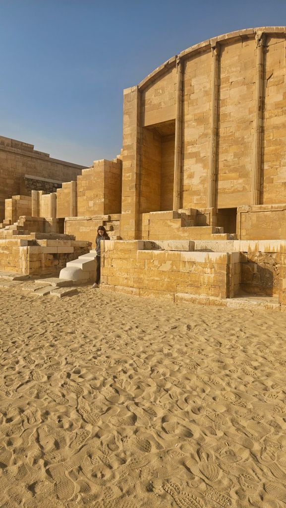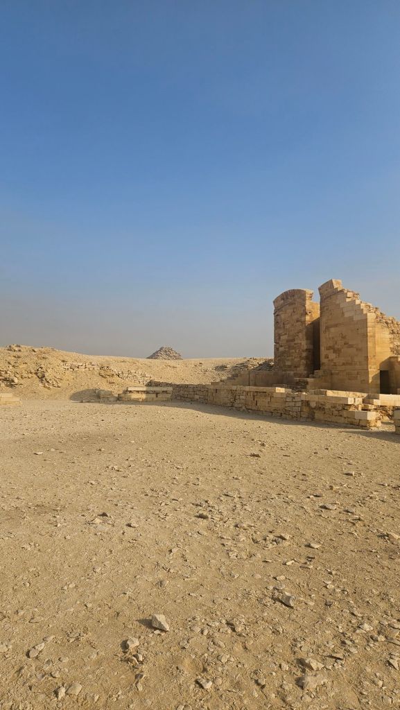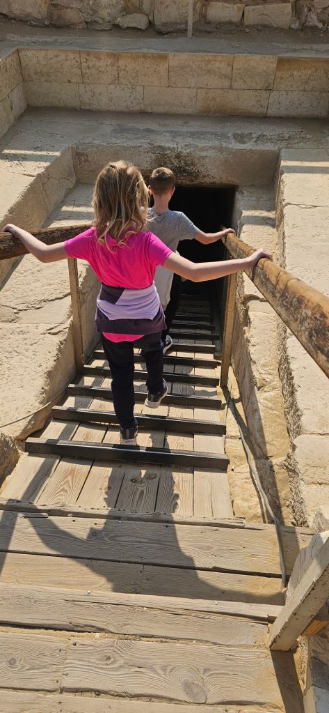 It was about a 45 minute drive from Giza to Saqqara and boy was it eventful. We played “I spy oh my goodness what is that” which included: cars, people, tuk tuks, donkeys with carriages, horses, with carriages, a man with one leg walking in the the road. There was lots of honking and no one drives in the lanes. There is trash everywhere, in the streets, in the canals. Way too many men on one scooter or in a van. It was wild!