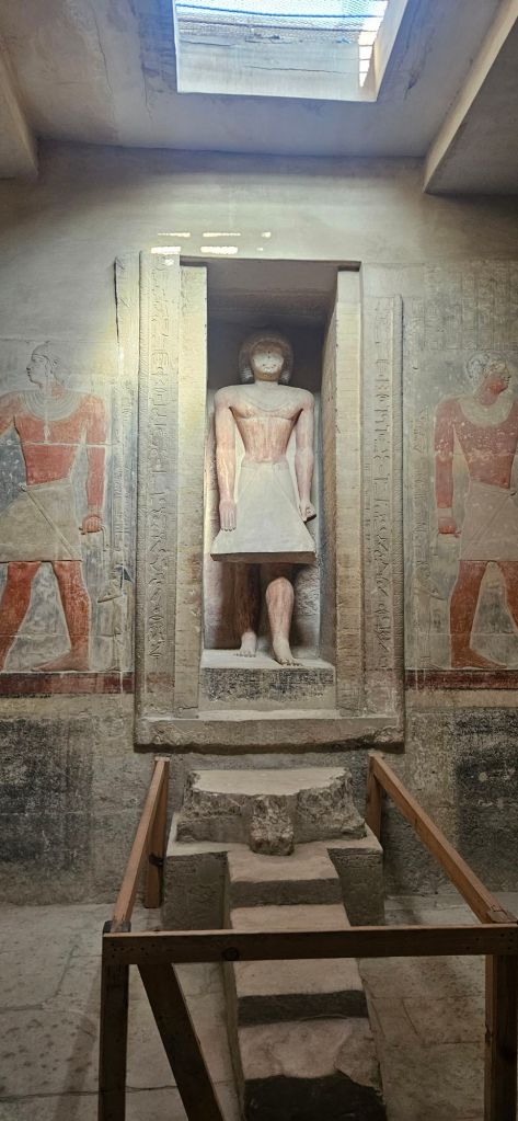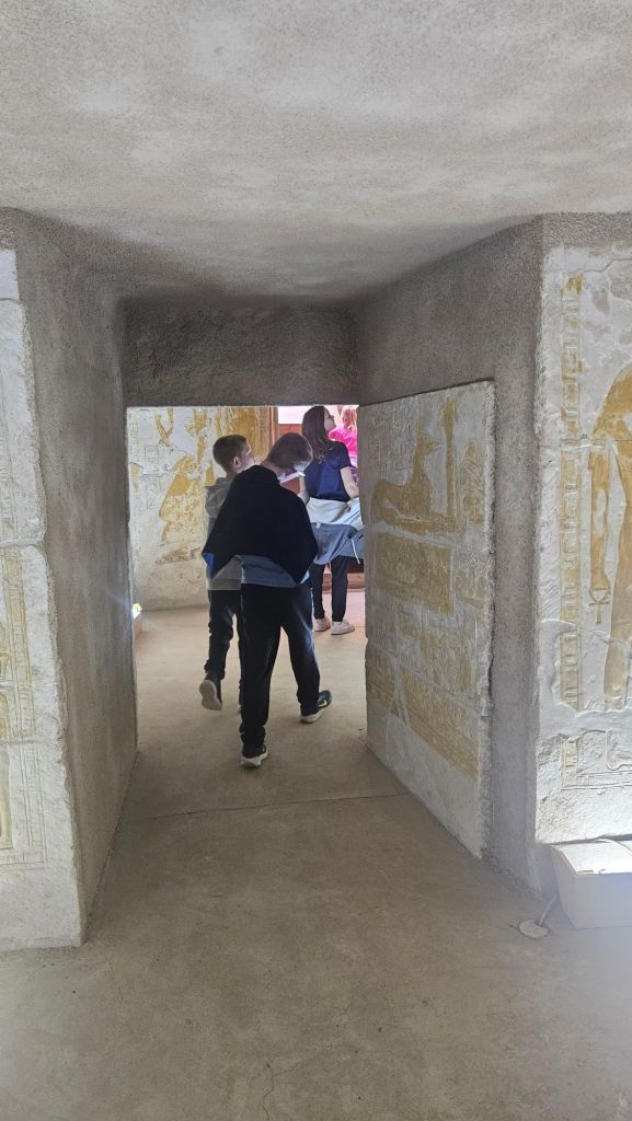 We visited the oldest stone structure (pyramid) in the world. The Djoser Pryamid is a step pyramid and part of a greater pyramid field or cemetery. It includes tombs spanning multiple dynasties. We got to go inside several of the pyramids and tombs.