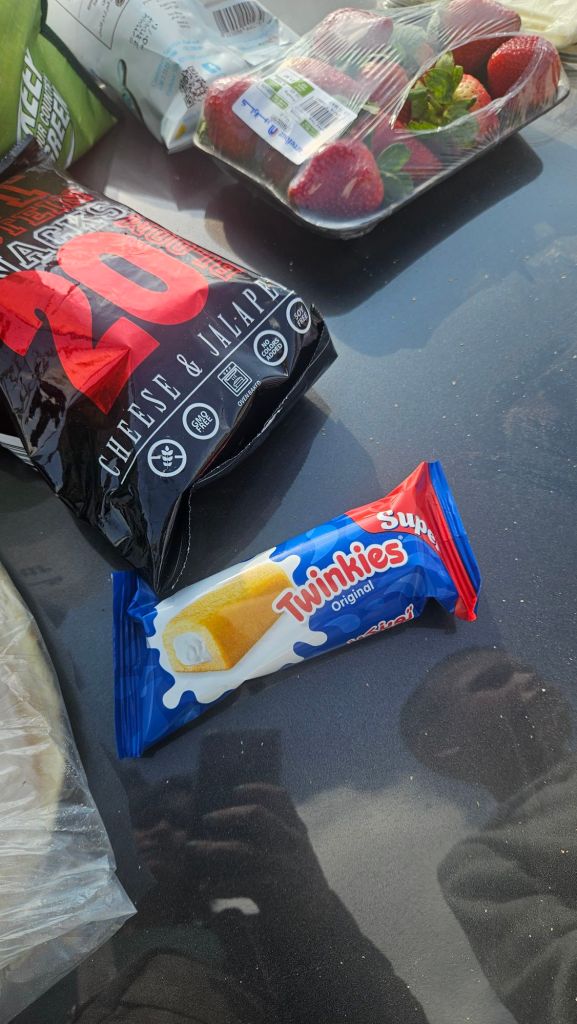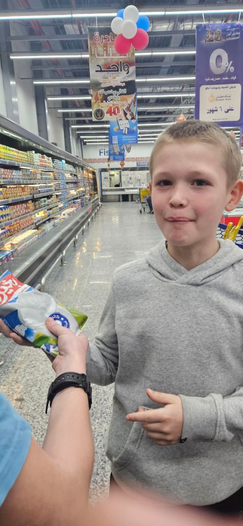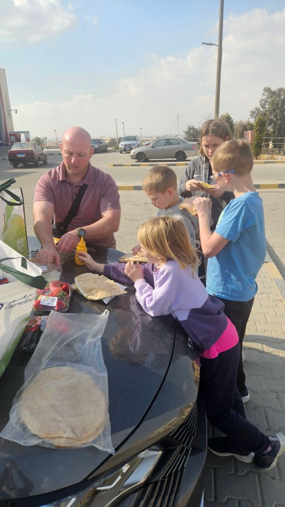 We visited an Egyptian grocery store and made lunch on the hood of the car.