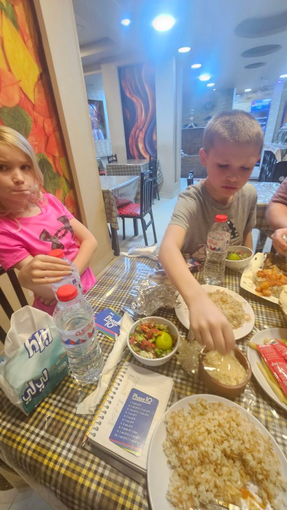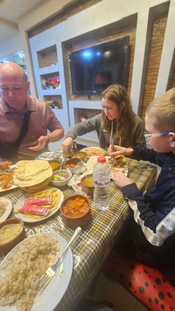 We decided to stop in our only option before getting to Luxor, which was Sohag. It was crazy! The AirBNB was not great in an even worse area. The “hotel” looked like it was the Tower of Terror. They had a “restaurant” in the “hotel” in which they ordered from another restaurant and brought to their restaurant. It was next to a train station with a train going all night. There was also a mosque, which they pray all night over a loud speaker. I don’t think any of the Egyptians sleep because there were cars honking and people talking all night. There was a rooster, who didn’t just crow at sunrise, and no heat in the room. We were ready for our trek to Luxor, so we thought.