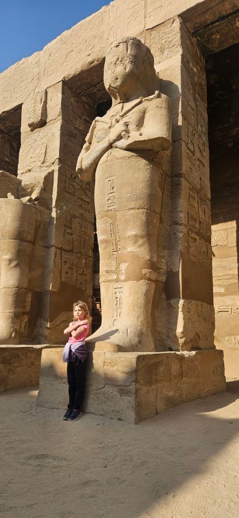 We took a peaceful back road with no hagglers to Karnak Temple. Karnak Temple was built over 2000 years ago in dedication to Amun-Ra, the Ancient Egyptian king of the gods. The temple has massive stone columns and some of the oldest surviving obelisks. To stand in ancient history next to massive stone pillars and statues was pretty amazing.
