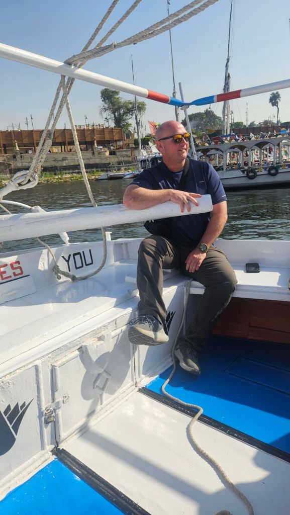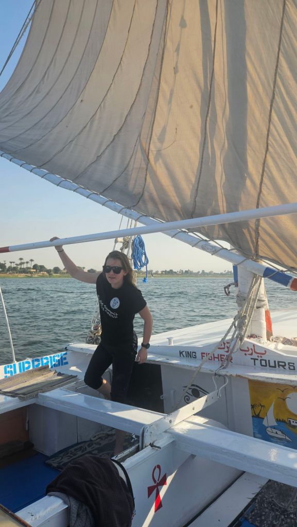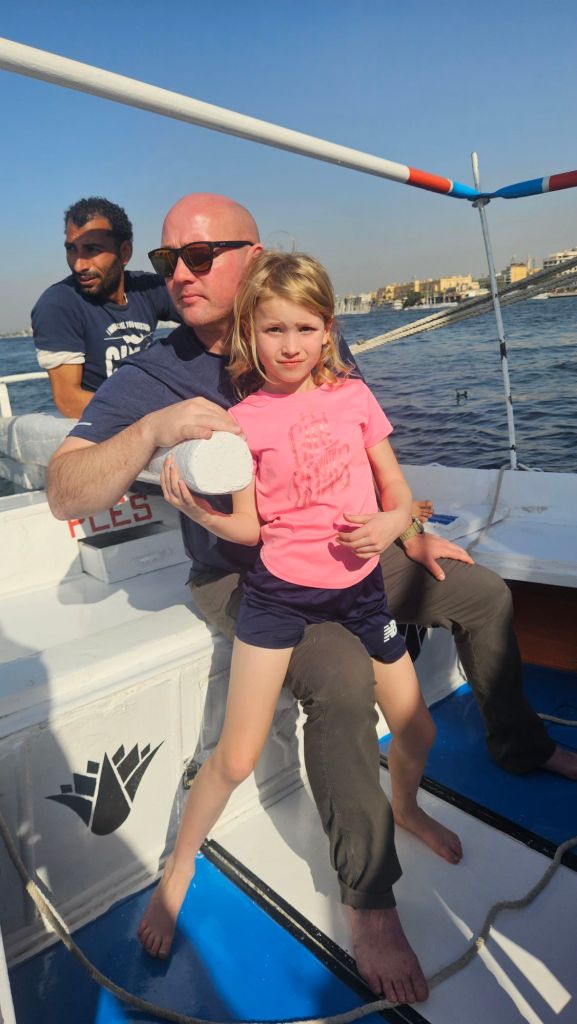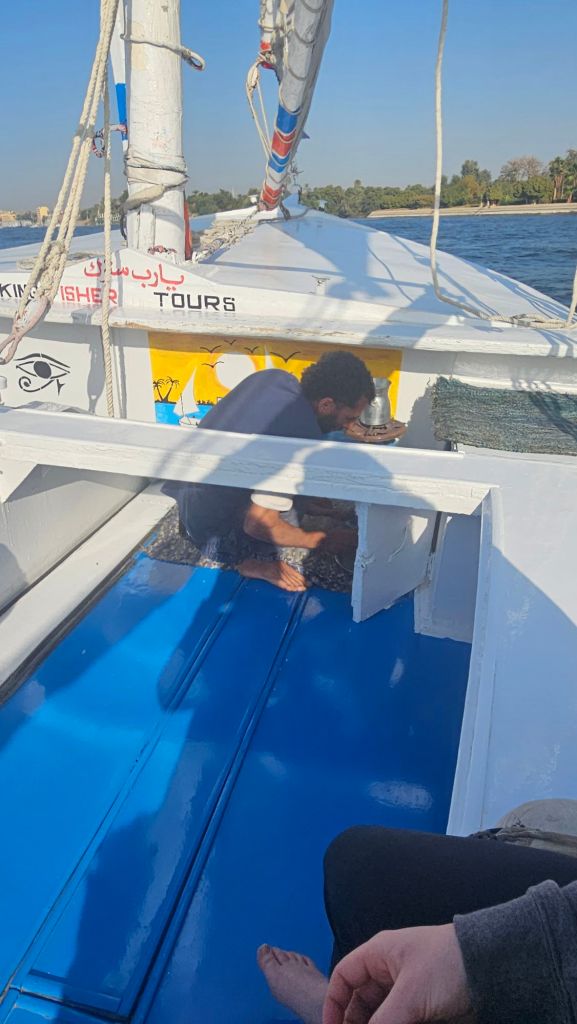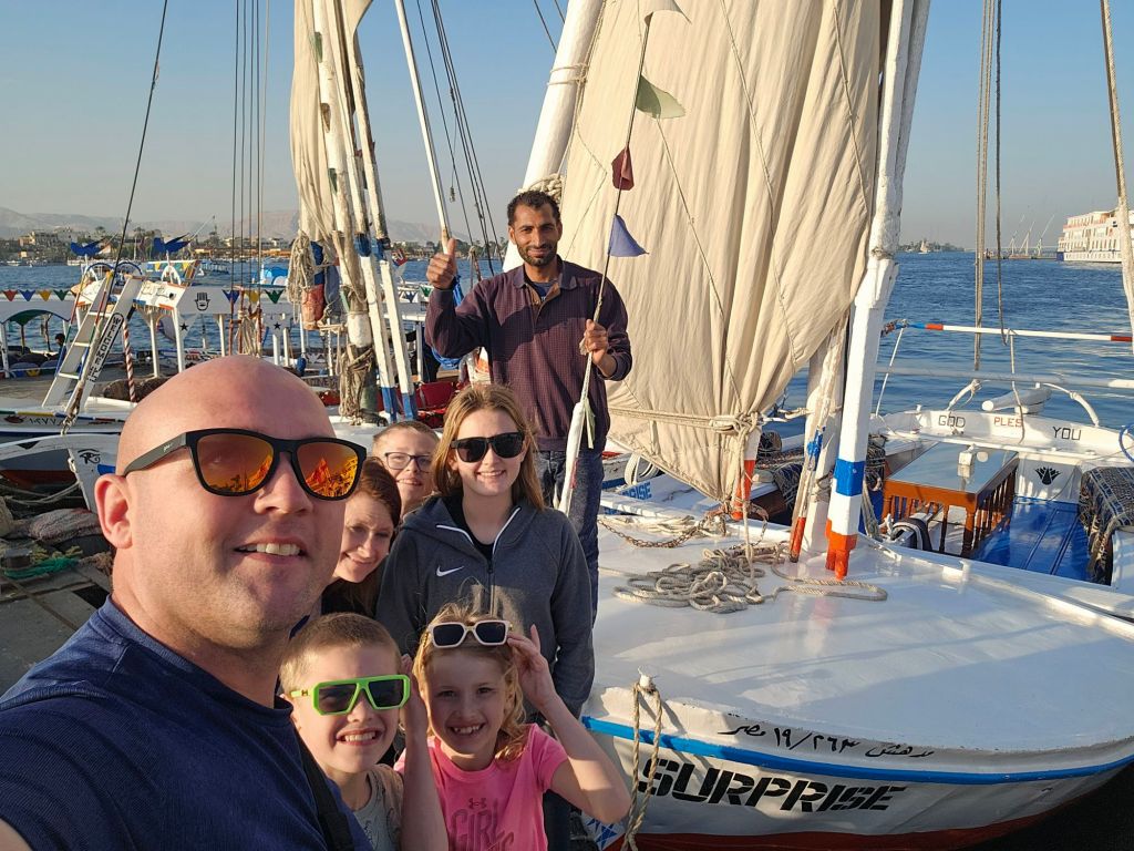 We then headed to the Nile for a cruise down the river. Our guide was great and we loved being back on the water. The kids (and Steven) got to help with the steering and sails.
