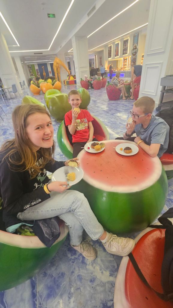We stayed at an all inclusive resort that was very nice and clean. The resort had over 60 slides, lots of pools, food options all day and night, VR room, bikes, a midway with carnival rides, a sucker station, and all you can eat ice cream. It was a welcomed break. Don’t worry though, it wasn’t without it’s hagglers trying to sell you things.