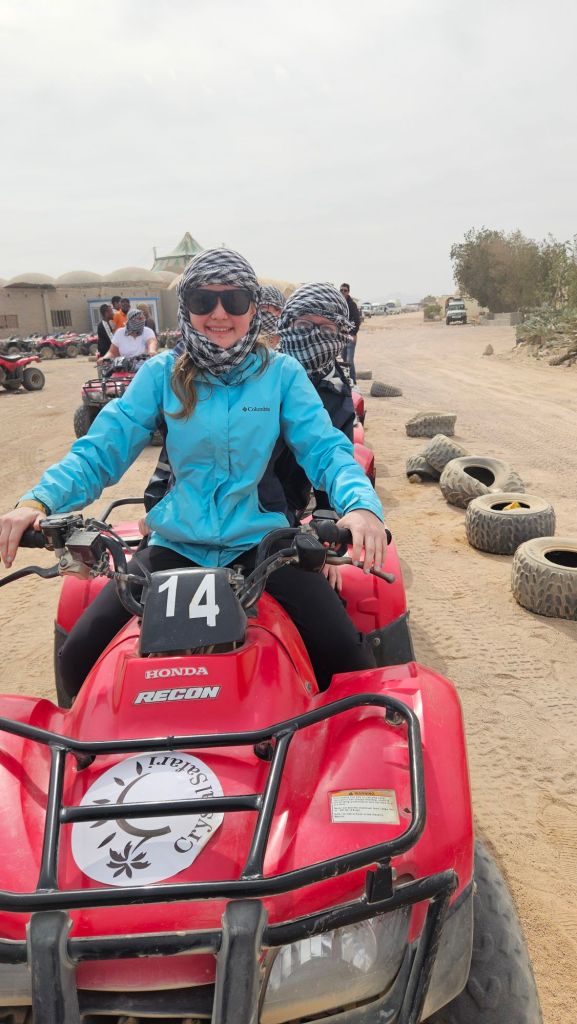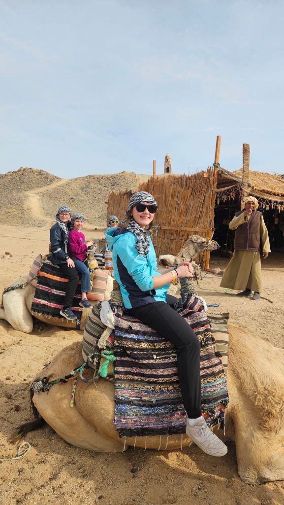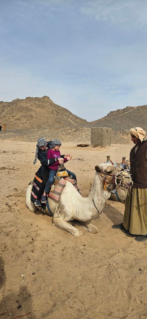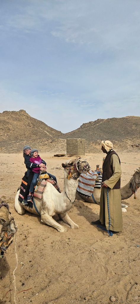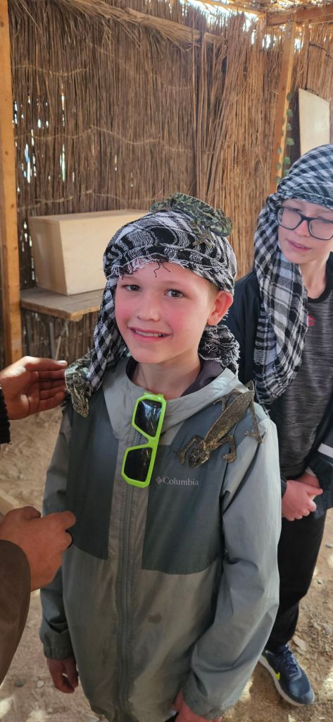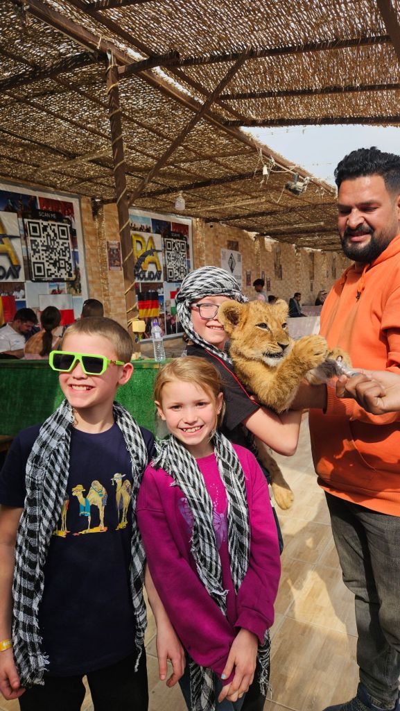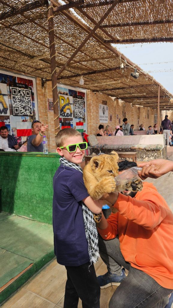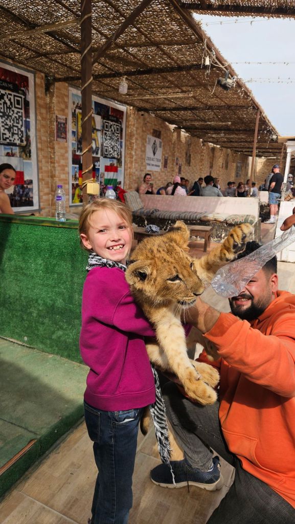 We got to go play out in the desert on 4-wheelers and dune buggies. We got to ride camels and learn about life in outlying villages in Egypt. We got to see lizards and monkeys that stole suckers right out of the kid’s pockets (from the never-ending sucker station at the hotel) and hold a baby lion.