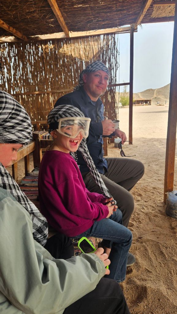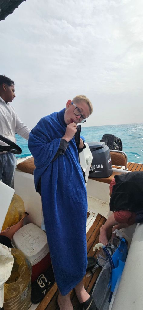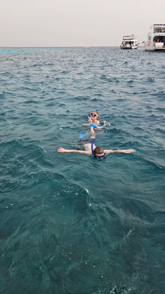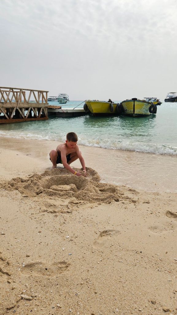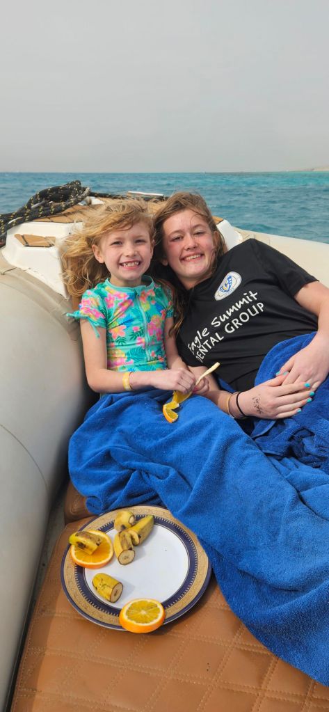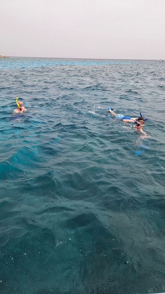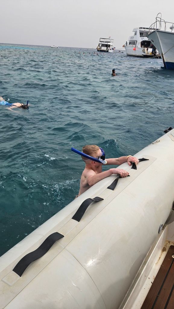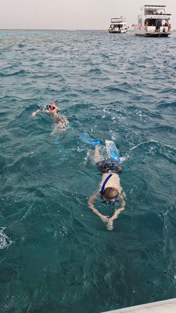 We went on a speed boat ride out in the Red Sea to go snorkeling and play on the beach. The water was beautiful, the fish were pretty, and being back in the sand was awesome.
