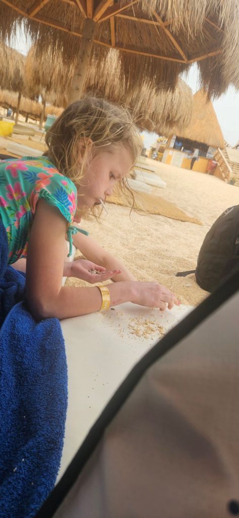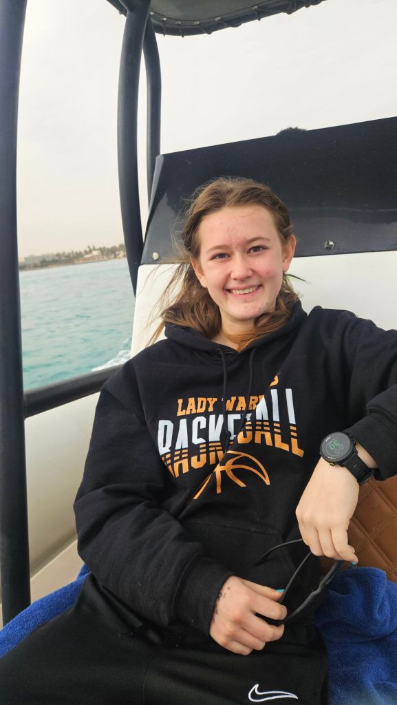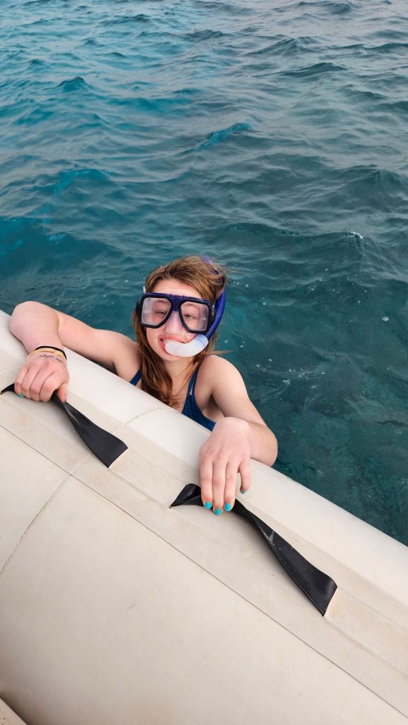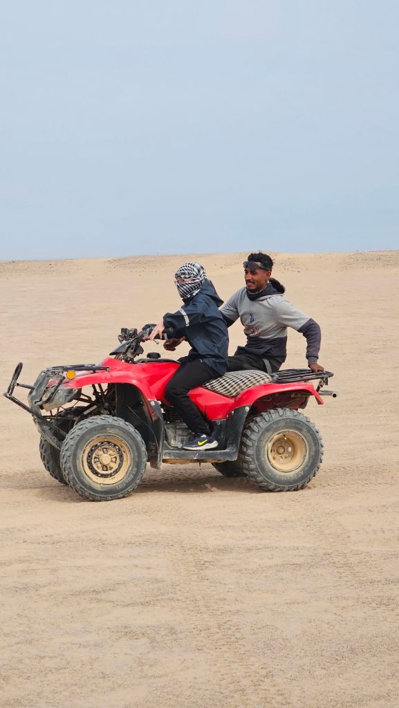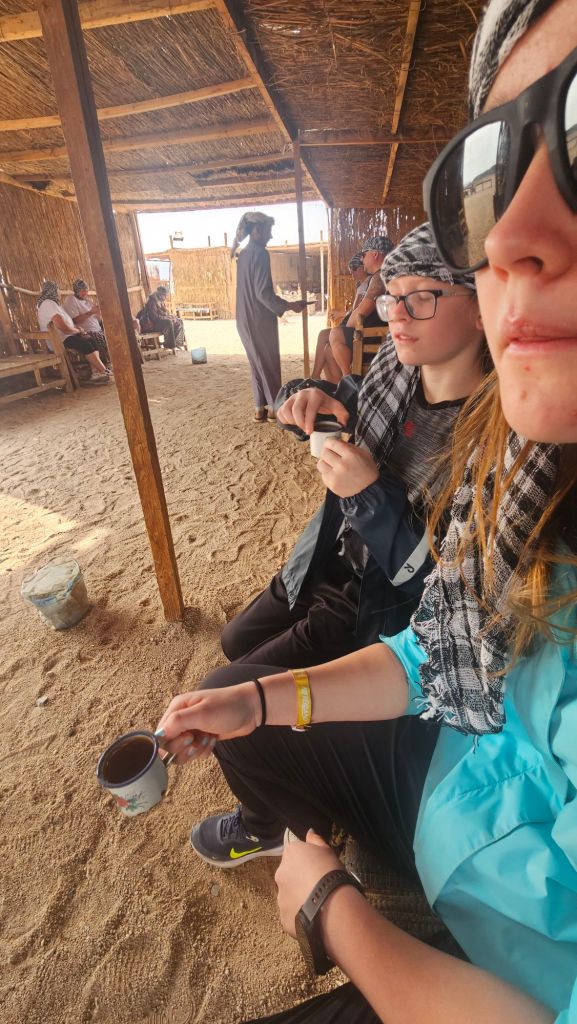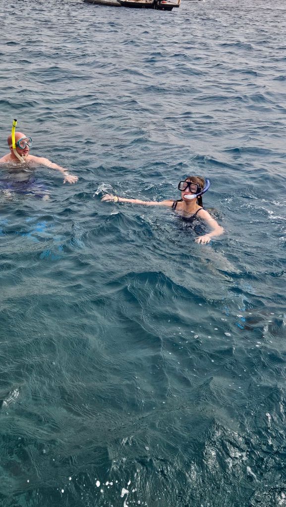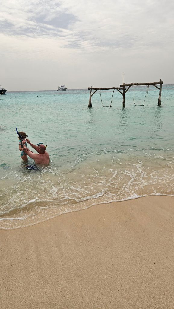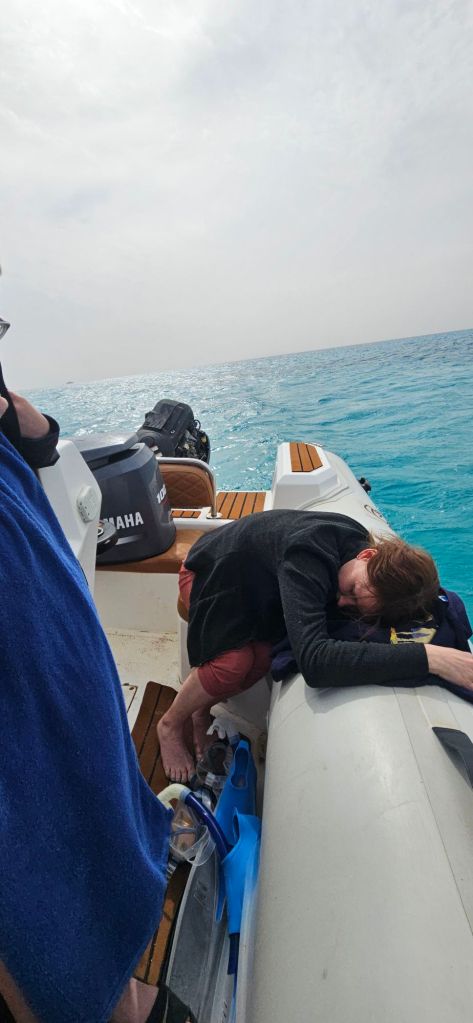 We went on a speed boat ride out in the Red Sea to go snorkeling and play on the beach. The water was beautiful, the fish were pretty, and being back in the sand was awesome.