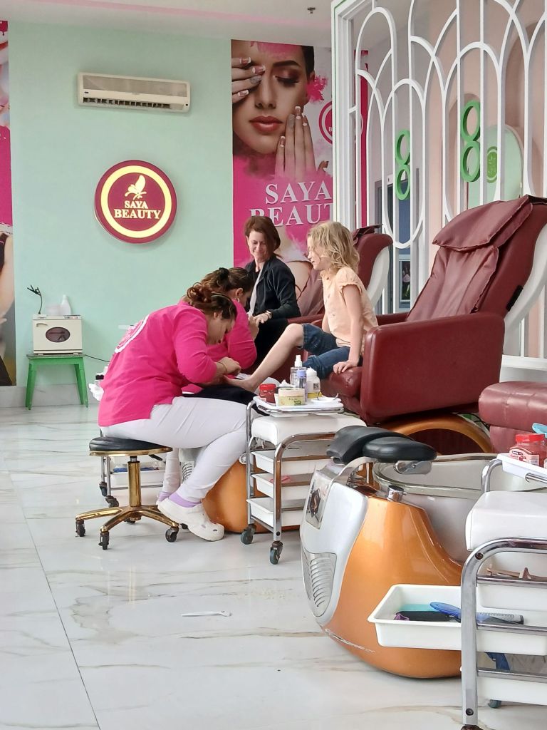 We enjoyed a spa treatment while at the resort. The girls got facials, manicures, and pedicures. The (kid) boys got fresh hair cuts and a mini-facial.