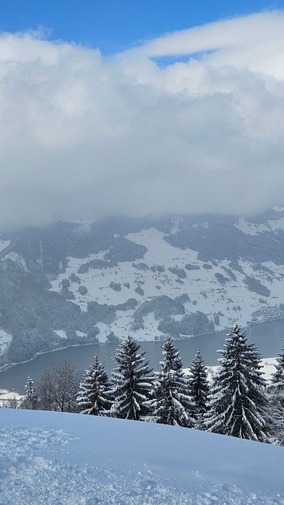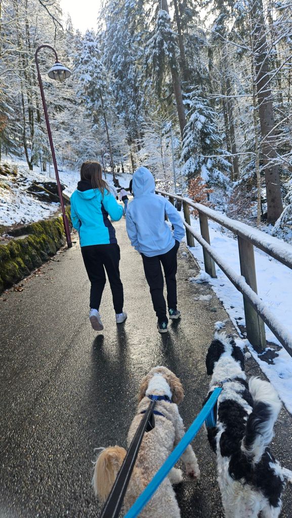 We then headed to Schwyz, Switzerland. Even after living in Alaska and seeing Denali, seeing the Swiss Alps was breathtaking. They also just happened to have an out of season record snow fall. Our Alaskan born pups loved it. Getting to our AirBnB was an experience in itself. Our plan was to check in and then go grab a bite to eat. But once we trecked up the mountain there was no going back. So, we had a dinner of snacks and a game of Phase 10 all circled on the floor together. Oh, did I mention our AirBnB was hostile style. It was an awesome AirBnB though and they had goats!