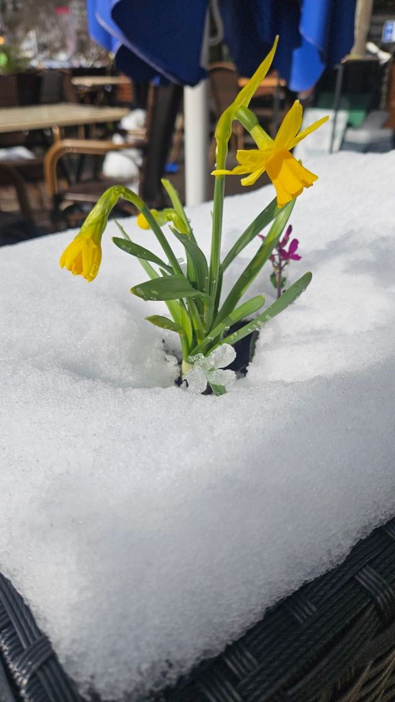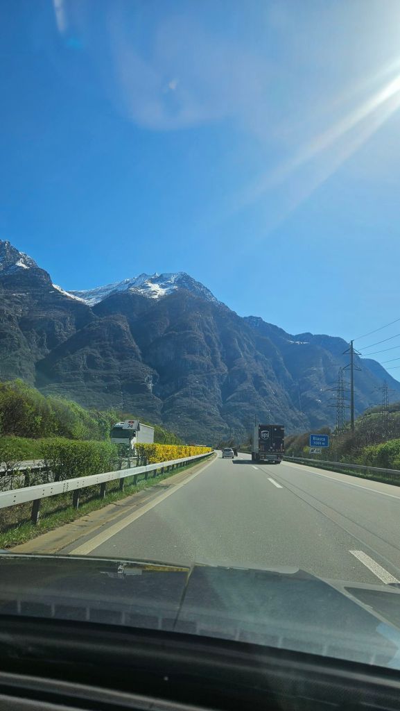 The weather pattern, because of the mountain range, is wild. We went through a very long tunnel. When we started it was snow covered, on the other side of the tunnel, there was minimal snow and lots of green.