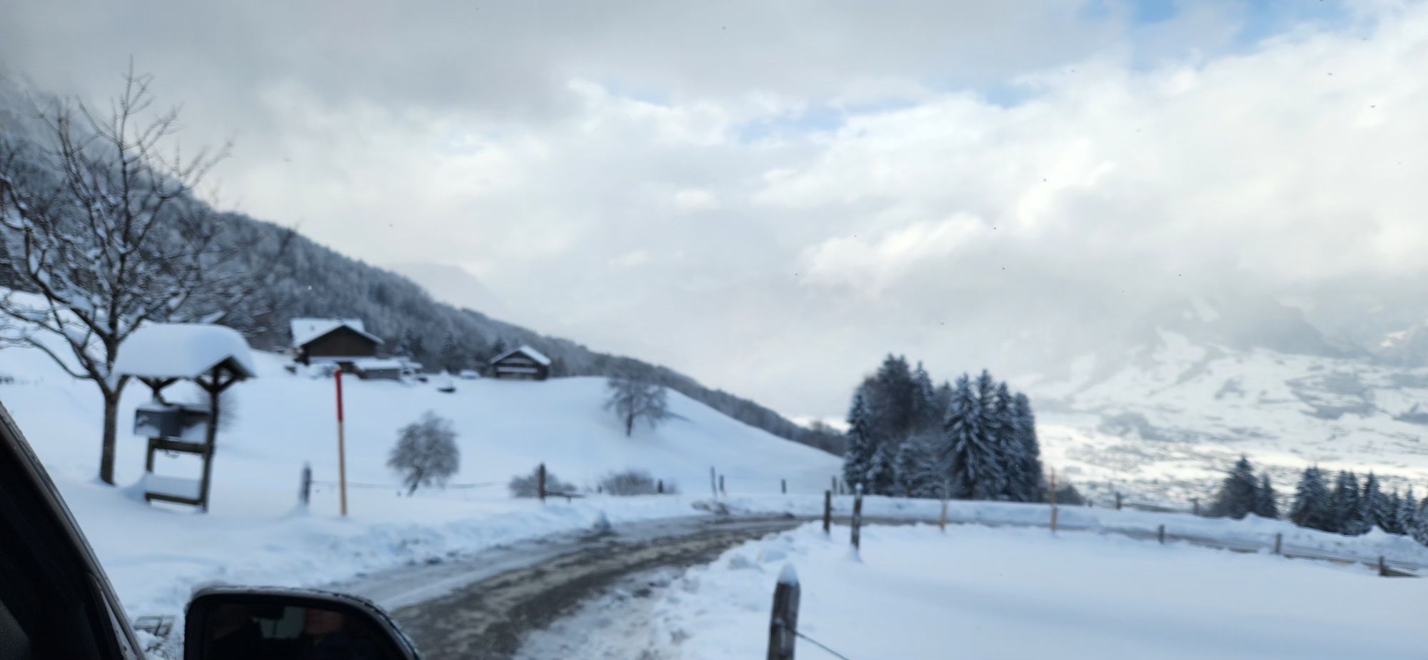 We then headed down the mountain after the “road” had been plowed in the morning for some Swiss chocolate. We had a breakfast of chocolate chip bread from the chocolate shop.