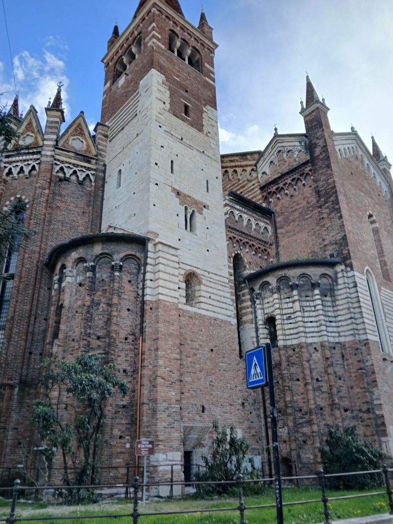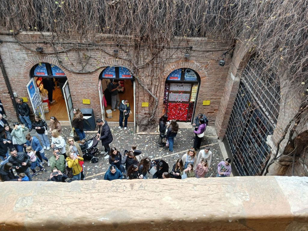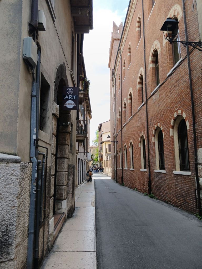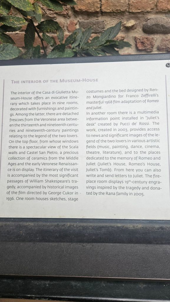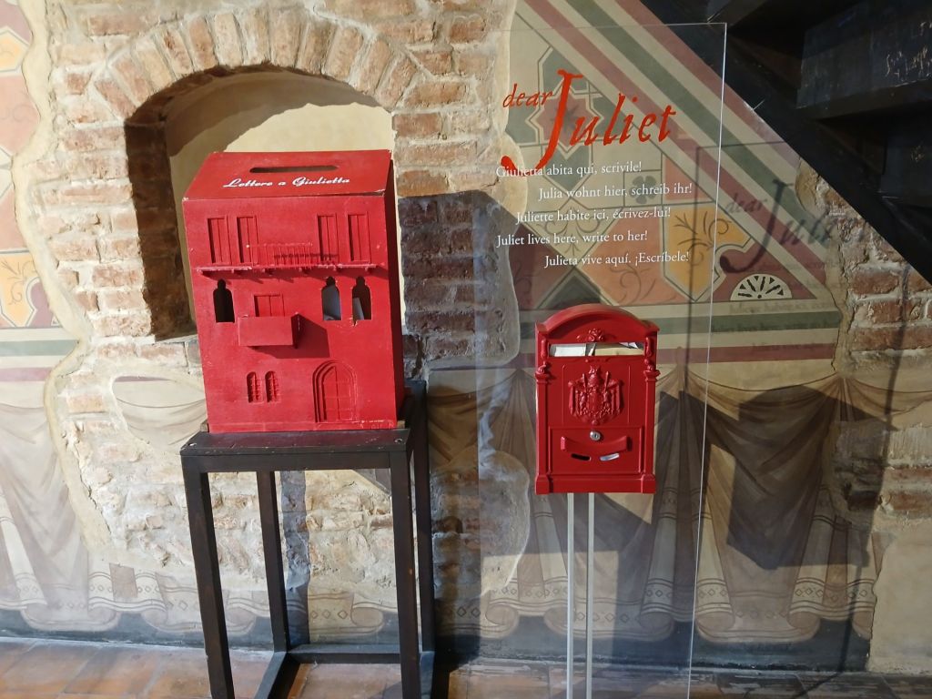 The other was Casa di Giulietta (Julliet’s House). The tradition is to write a letter to Julliet and stick it to the wall. The wall is now blocked, but there is a mailbox. The other tradition is to rub Julliet’s statue to bring good luck in love.