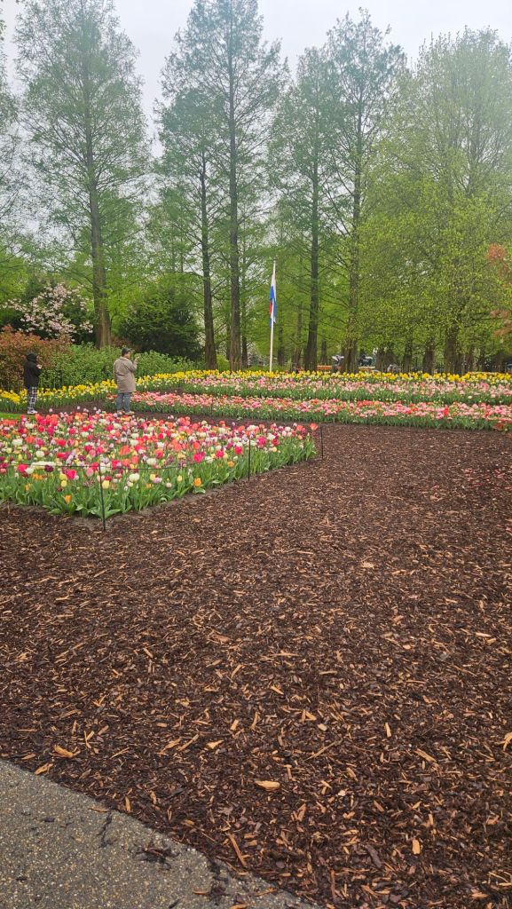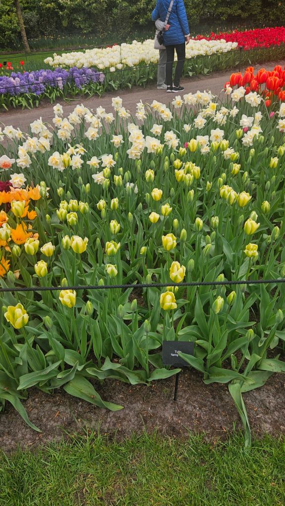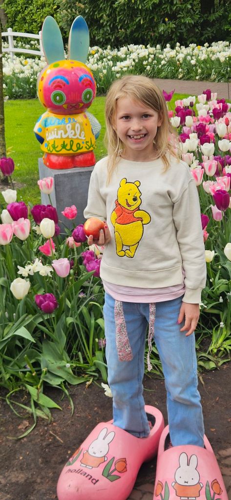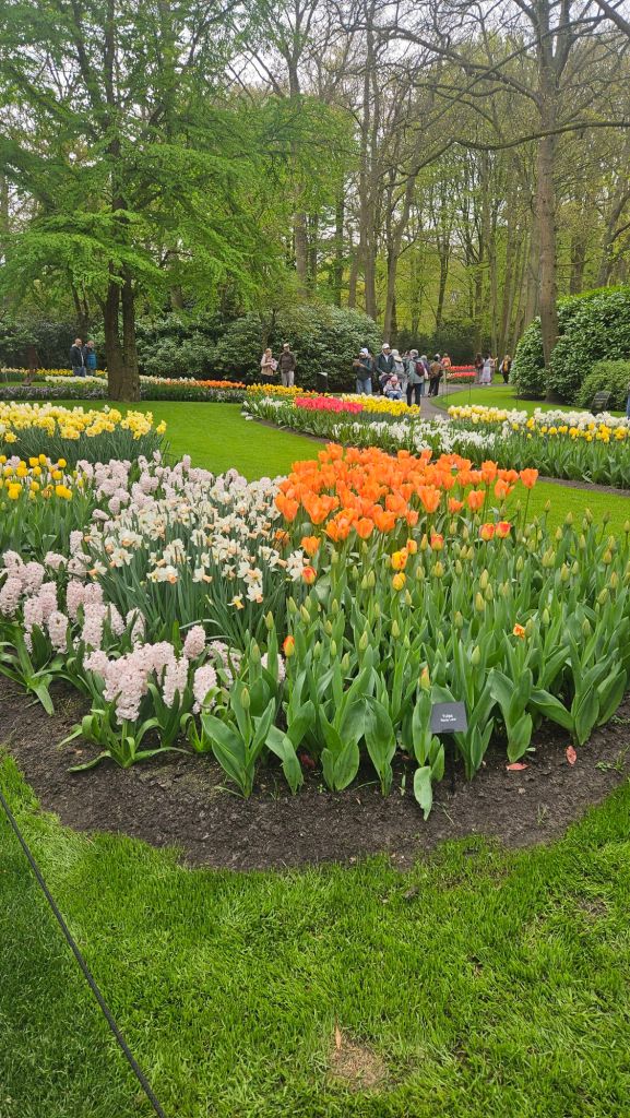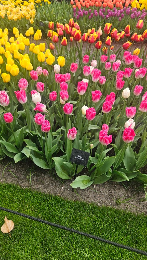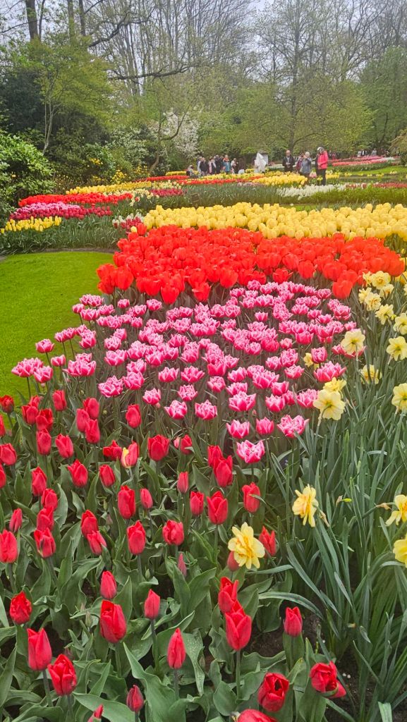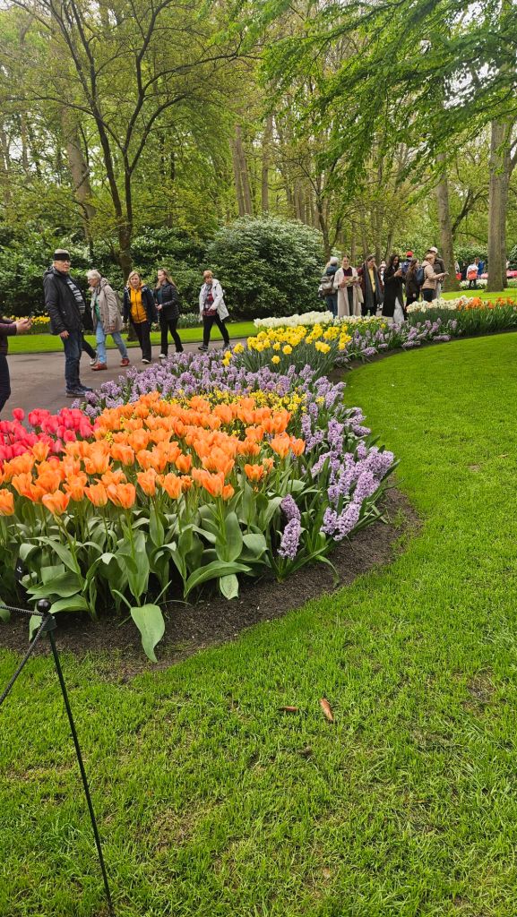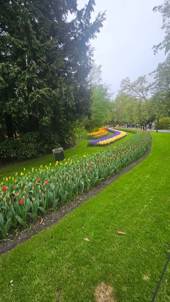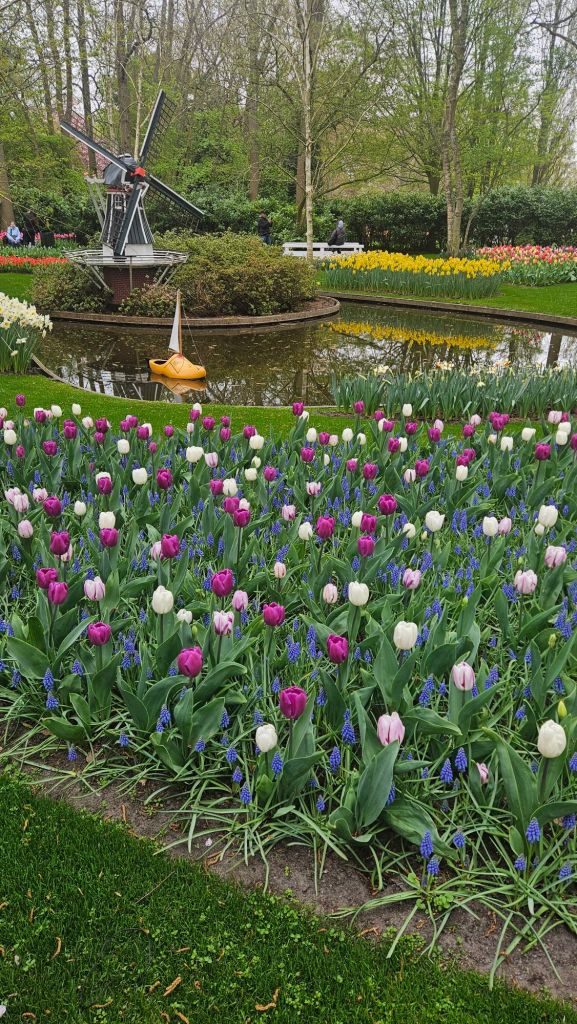 The next morning we headed to Keukenhof. It is one of the largest flower gardens in the world with over 7 million flowers, mostly tulips that bloom in the spring and it was one of my top things to see in Europe. It was amazingly beautiful! We had a picnic lunch, the kids did a scavenger hunt, and discovered tulip colors have names. I am sure by the end of the day everyone was tired of me saying “Look how beautiful,” “That color is pretty,” and “Do you smell how lovely it smells?” Get ready for flower picture overload.