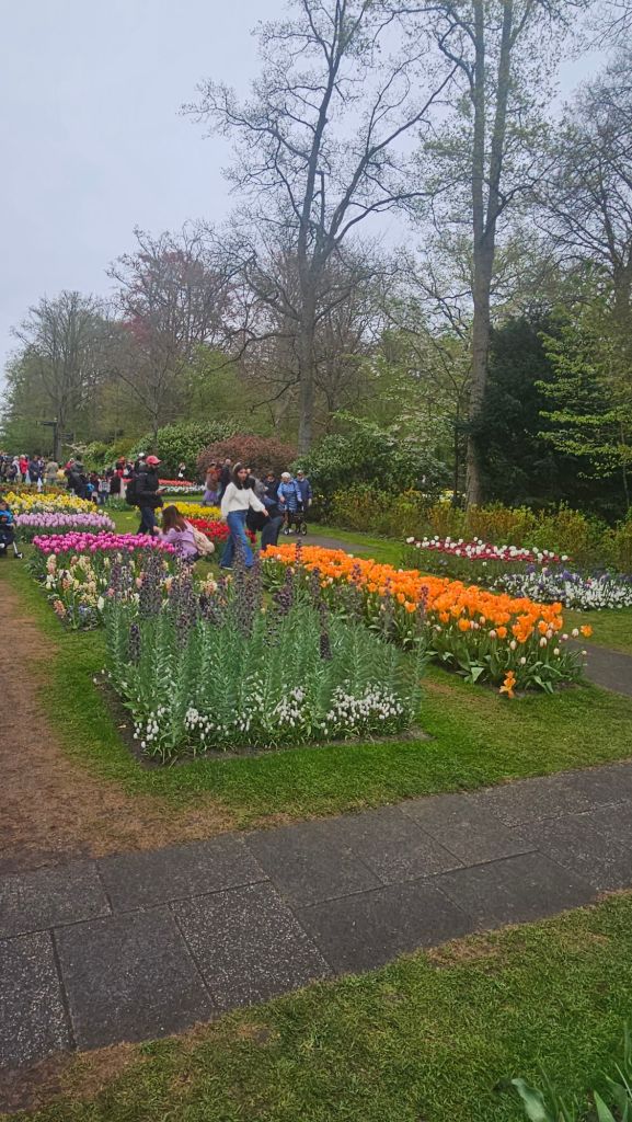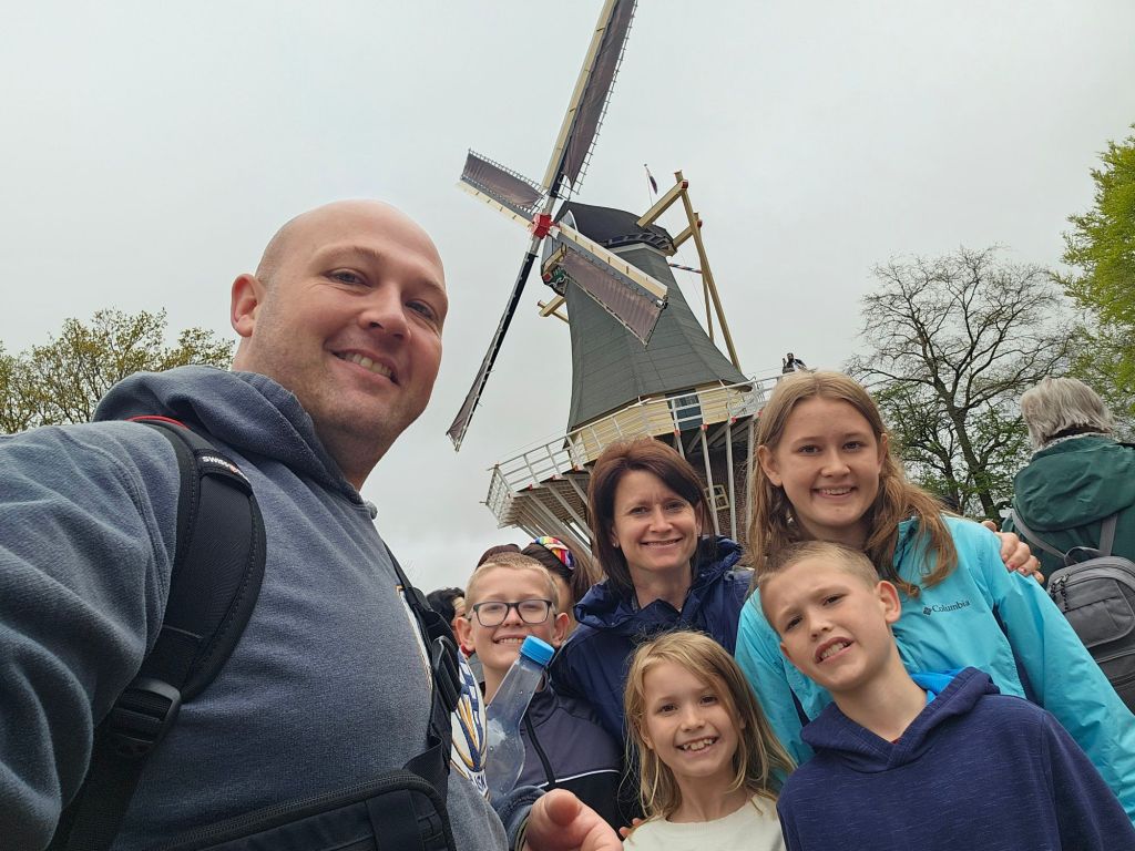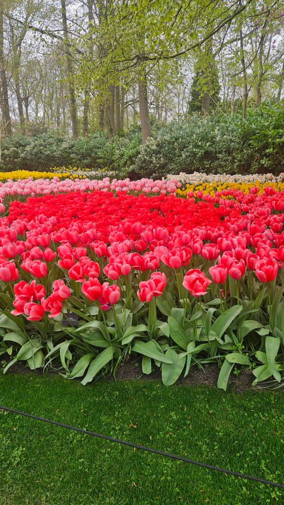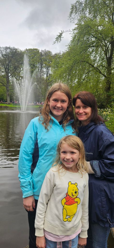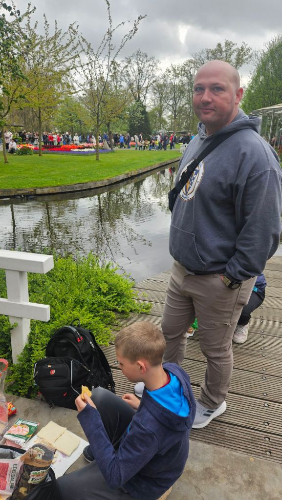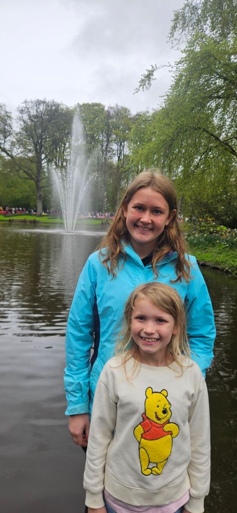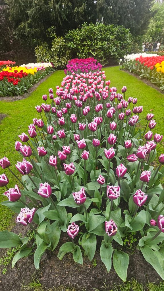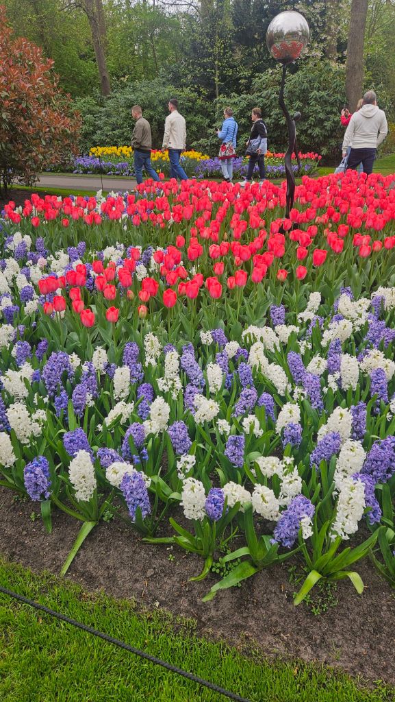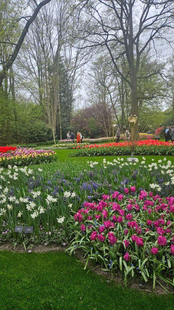 The next morning we headed to Keukenhof. It is one of the largest flower gardens in the world with over 7 million flowers, mostly tulips that bloom in the spring and it was one of my top things to see in Europe. It was amazingly beautiful! We had a picnic lunch, the kids did a scavenger hunt, and discovered tulip colors have names. I am sure by the end of the day everyone was tired of me saying “Look how beautiful,” “That color is pretty,” and “Do you smell how lovely it smells?” Get ready for flower picture overload.