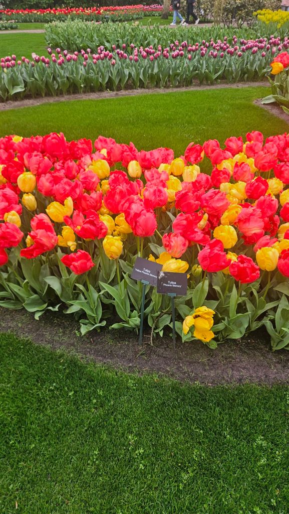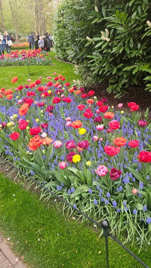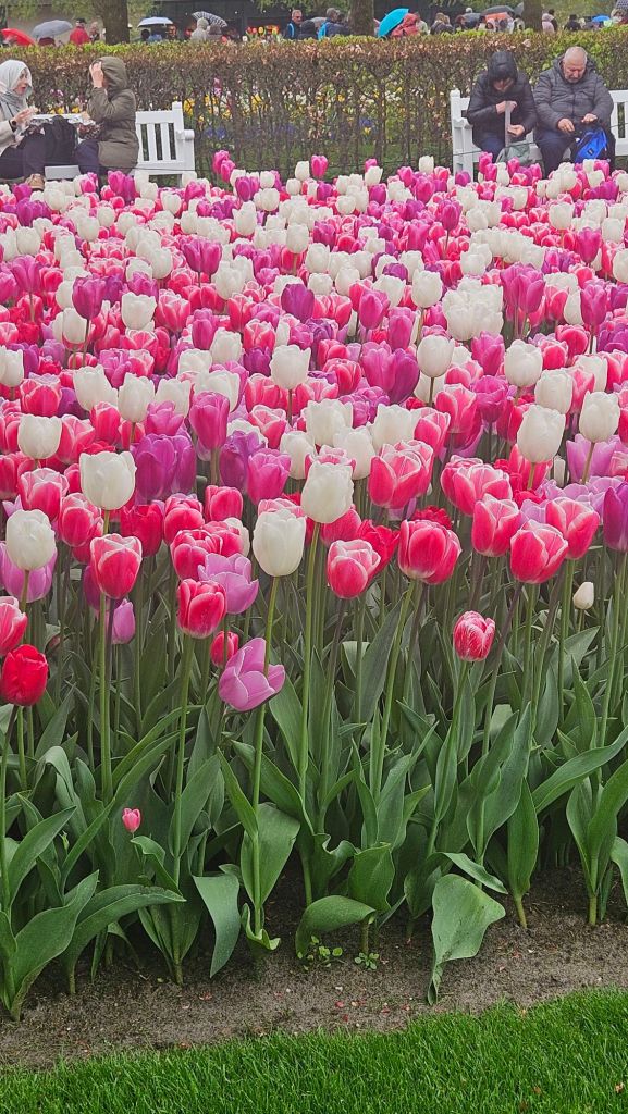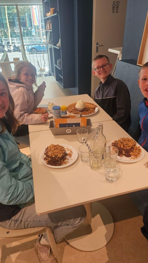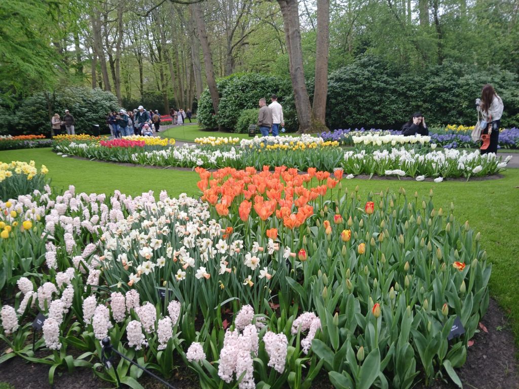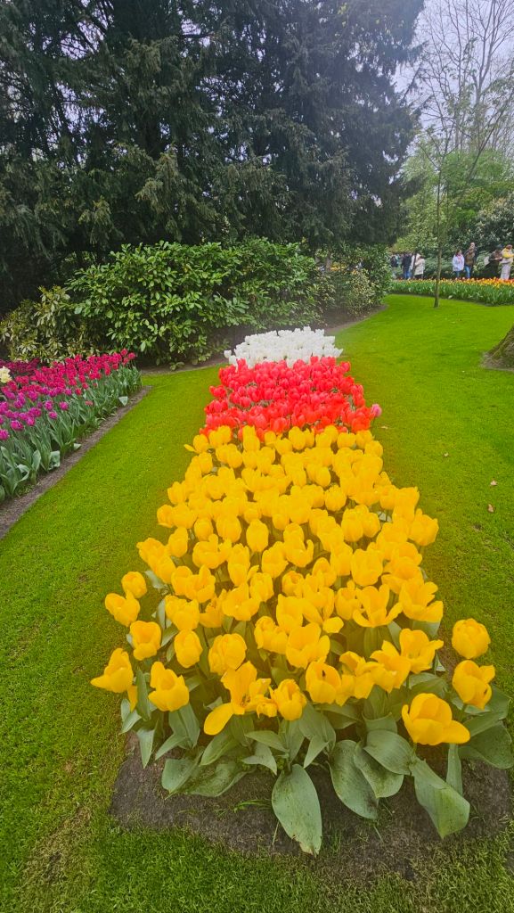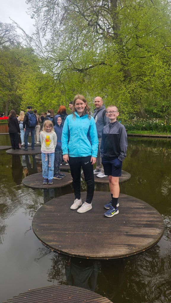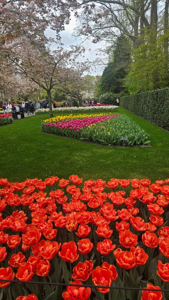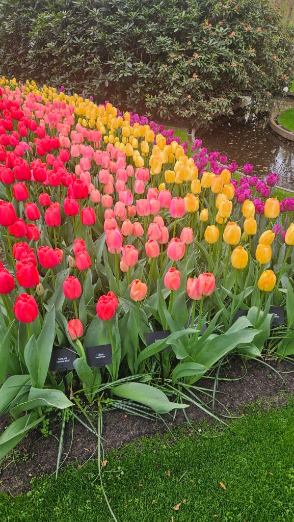 The next morning we headed to Keukenhof. It is one of the largest flower gardens in the world with over 7 million flowers, mostly tulips that bloom in the spring and it was one of my top things to see in Europe. It was amazingly beautiful! We had a picnic lunch, the kids did a scavenger hunt, and discovered tulip colors have names. I am sure by the end of the day everyone was tired of me saying “Look how beautiful,” “That color is pretty,” and “Do you smell how lovely it smells?” Get ready for flower picture overload.