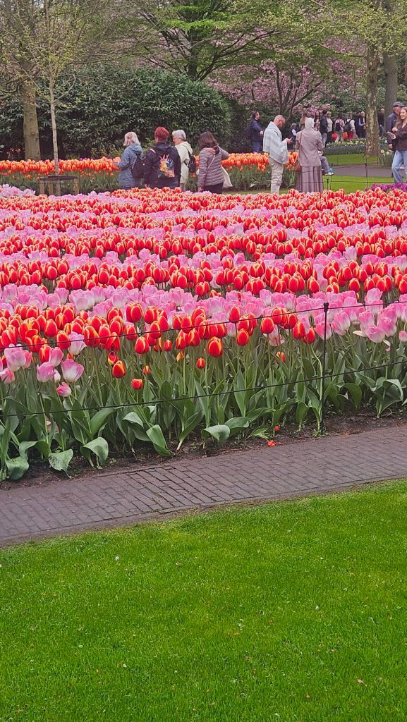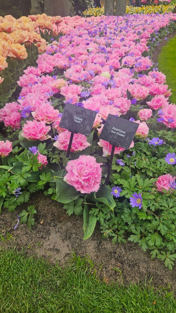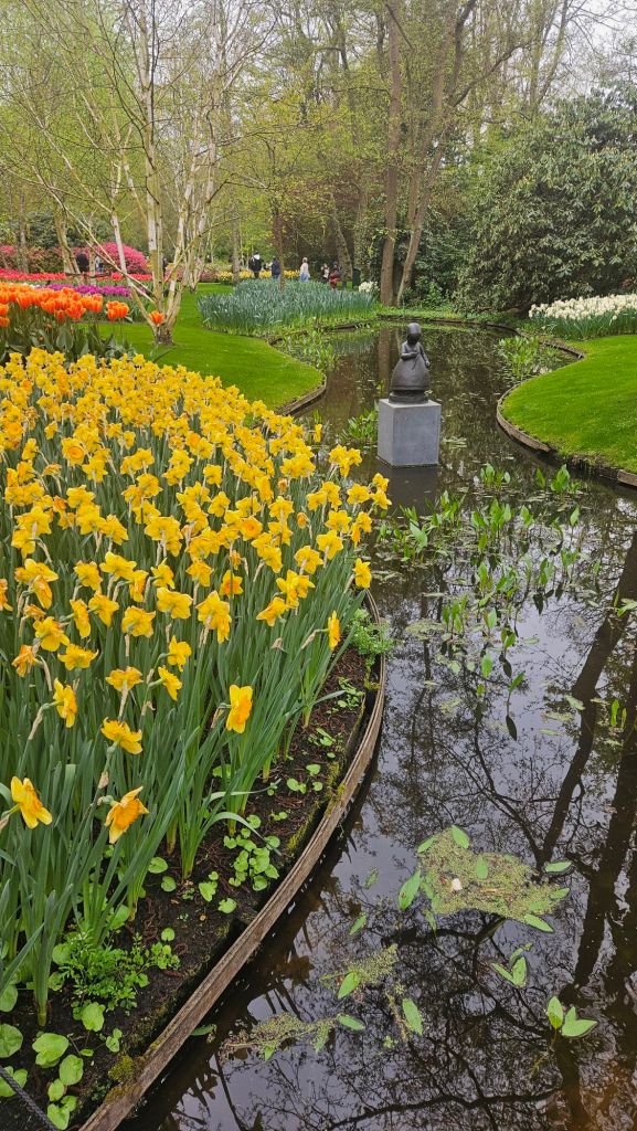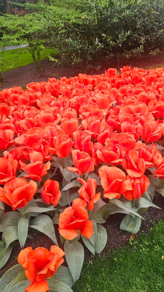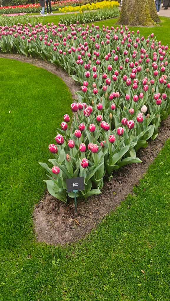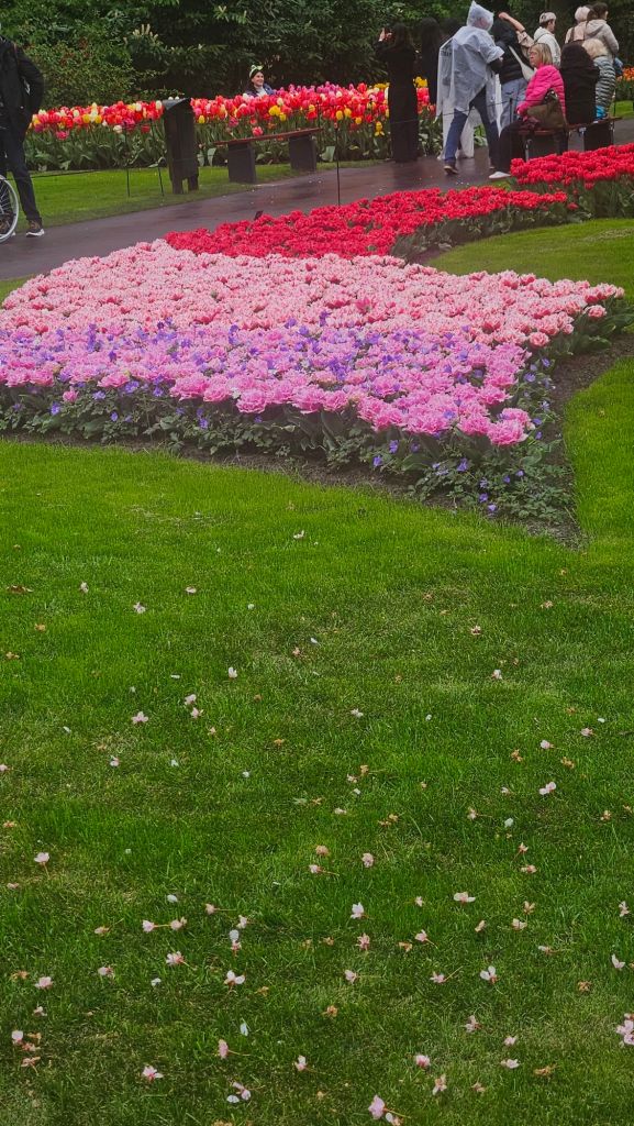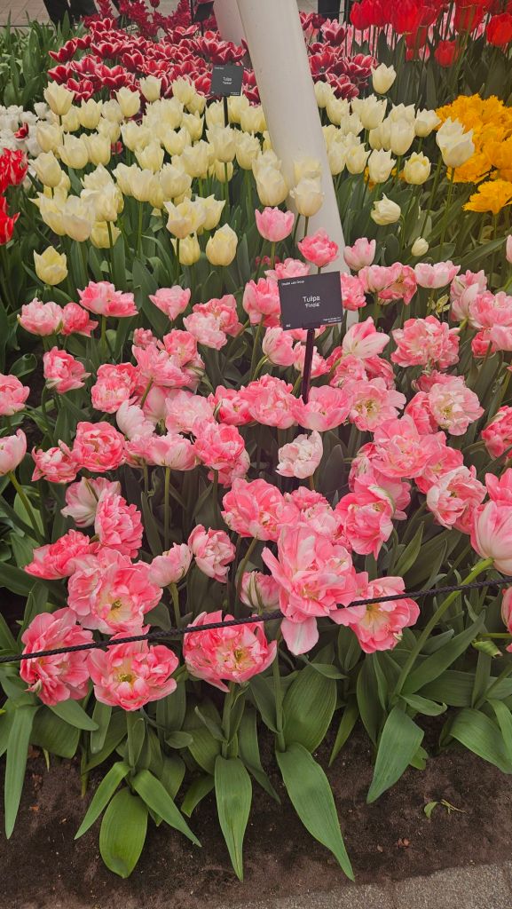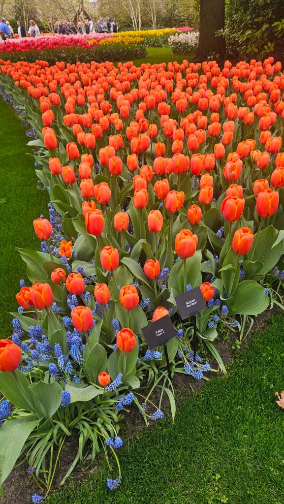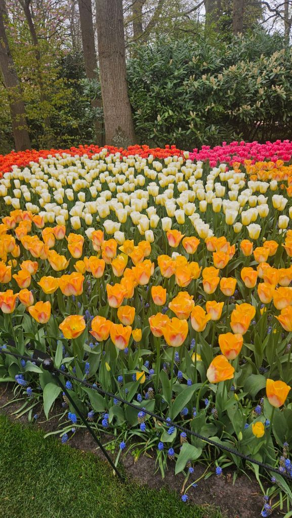 The next morning we headed to Keukenhof. It is one of the largest flower gardens in the world with over 7 million flowers, mostly tulips that bloom in the spring and it was one of my top things to see in Europe. It was amazingly beautiful! We had a picnic lunch, the kids did a scavenger hunt, and discovered tulip colors have names. I am sure by the end of the day everyone was tired of me saying “Look how beautiful,” “That color is pretty,” and “Do you smell how lovely it smells?” Get ready for flower picture overload.
