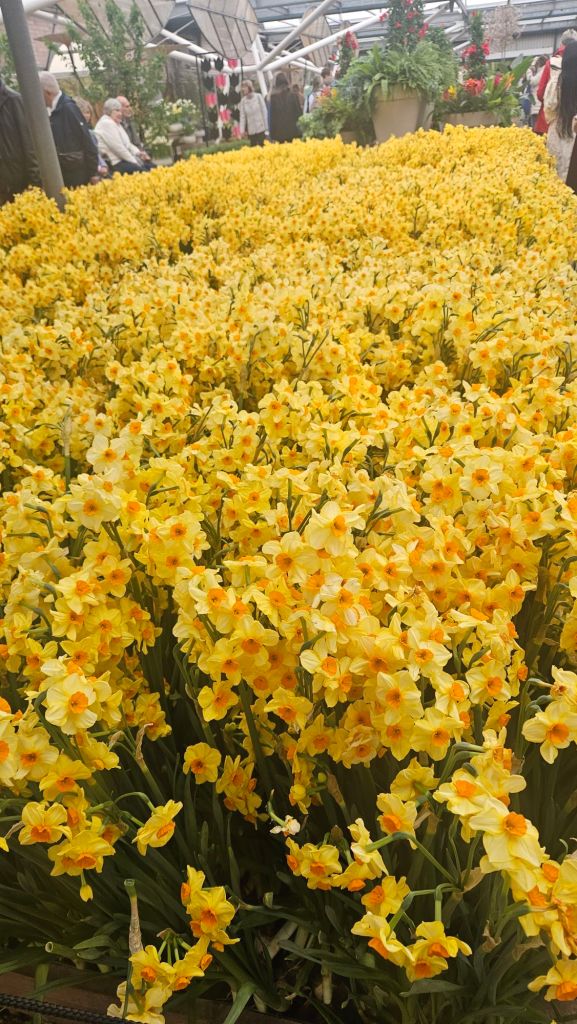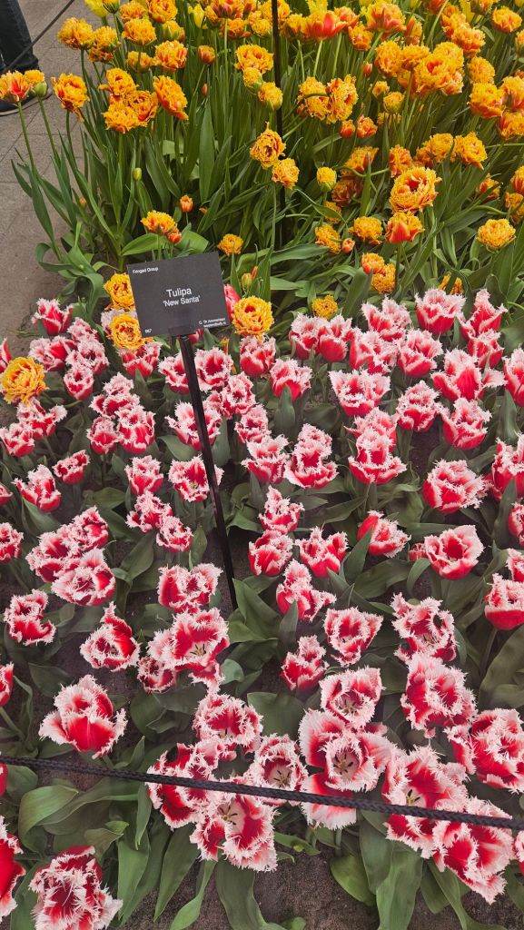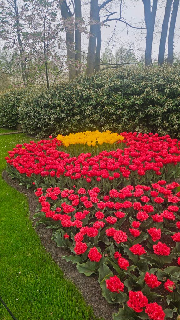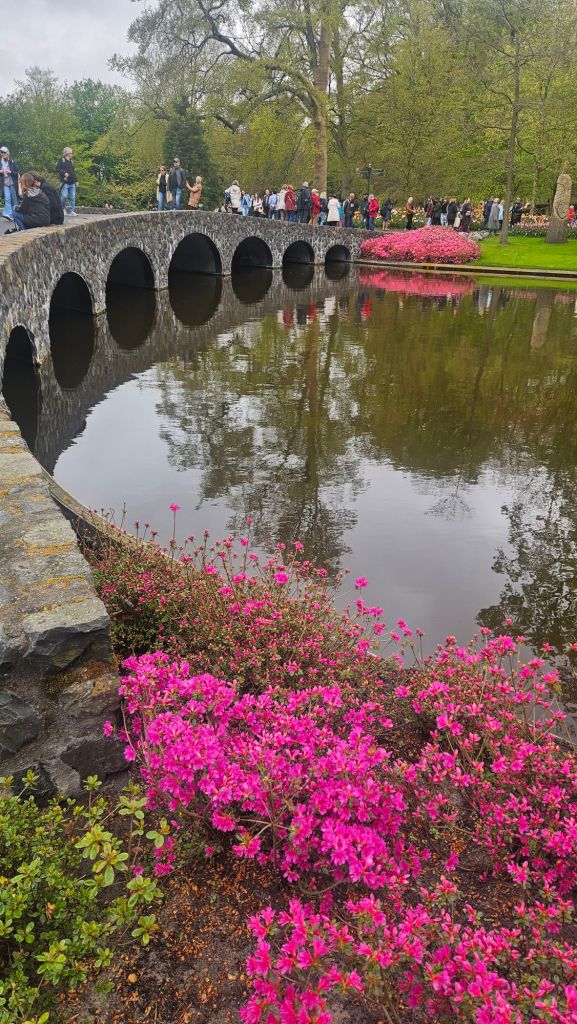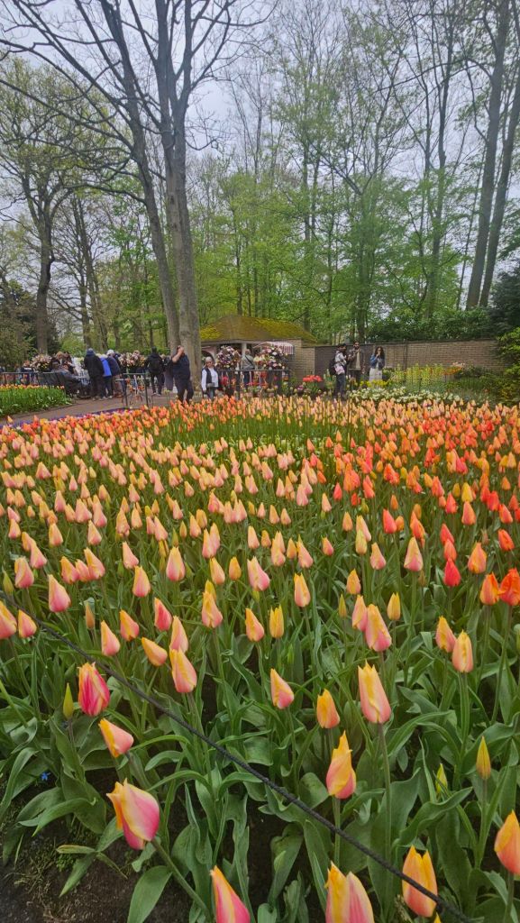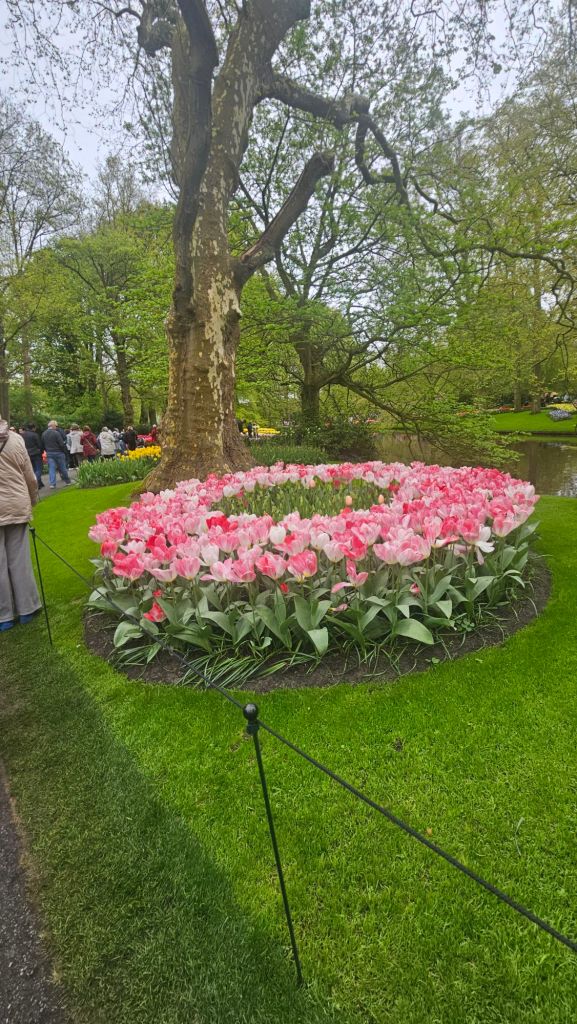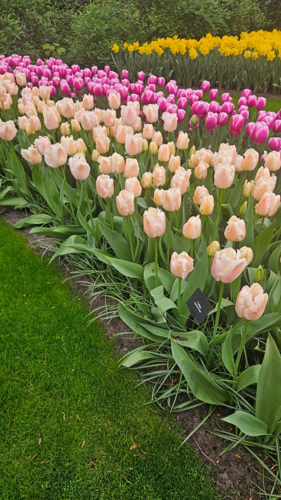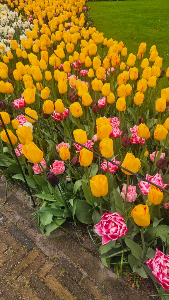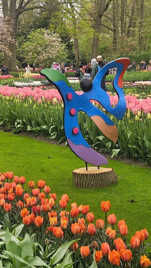 The next morning we headed to Keukenhof. It is one of the largest flower gardens in the world with over 7 million flowers, mostly tulips that bloom in the spring and it was one of my top things to see in Europe. It was amazingly beautiful! We had a picnic lunch, the kids did a scavenger hunt, and discovered tulip colors have names. I am sure by the end of the day everyone was tired of me saying “Look how beautiful,” “That color is pretty,” and “Do you smell how lovely it smells?” Get ready for flower picture overload.